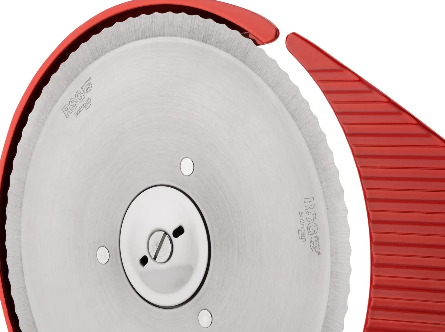 Mildes Spülmittel nur bei starker Verschmutzung verwenden; in der Regel genügt zur Reinigung ein weiches, leicht feuchtes Tuch. Das Messer lässt sich abschrauben. Der Hersteller empfiehlt außerdem, die Schlittenführung regelmäßig einzufetten.