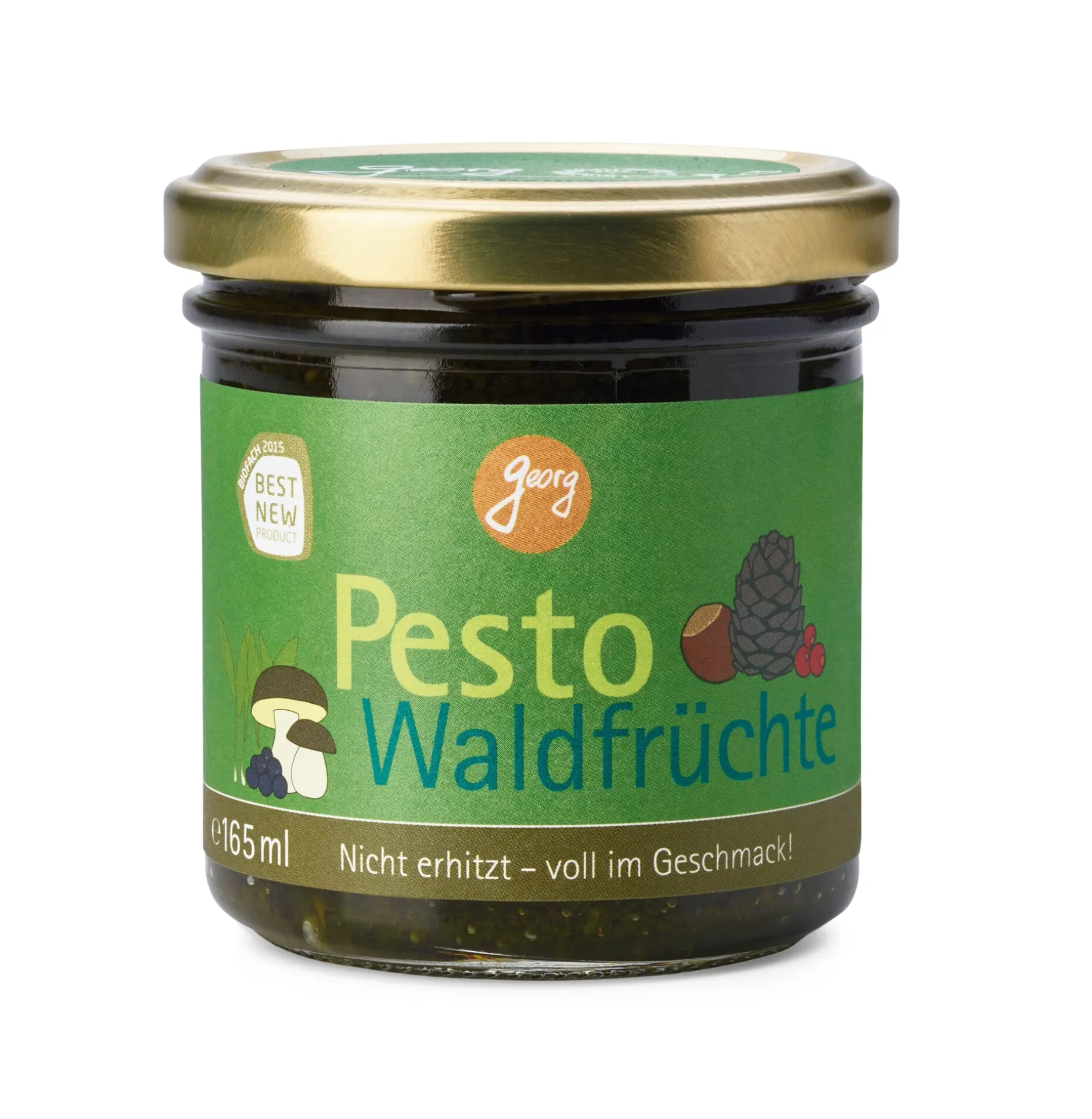 Ein kulinarischer Streifzug durch den Wald: Basis dieses Pestos ist wildgesammelter Bärlauch, hinzu kommen Wildheidelbeeren, Cranberrys, Maronen, sibirische Zedernüsse, Haselnüsse, Pilze und Waldhonig. Kaum verwunderlich, dass es hervorragend zu Pilzgerichten, Wild- und Fleischzubereitungen passt. Es schmeckt aber ebenso zu Nudeln und Kartoffeln, zu Salaten und auf Brot.