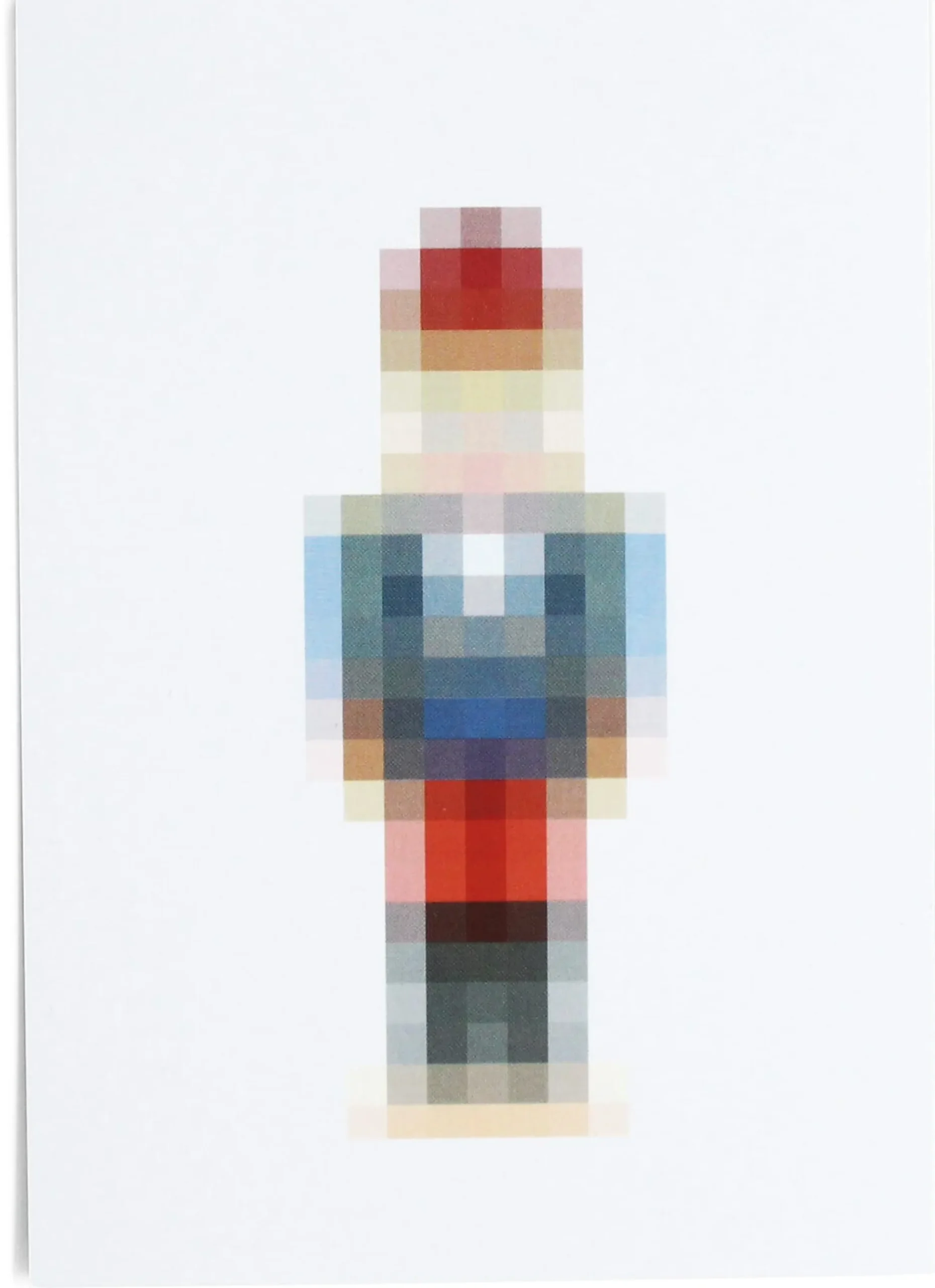 Grob gepixelt – aber gut zu erkennen. Die Silhouette eines klassischen Nussknackers. Schönes, grafisches Spiel in drei Farbversionen gedruckt auf hochwertigem Papier.