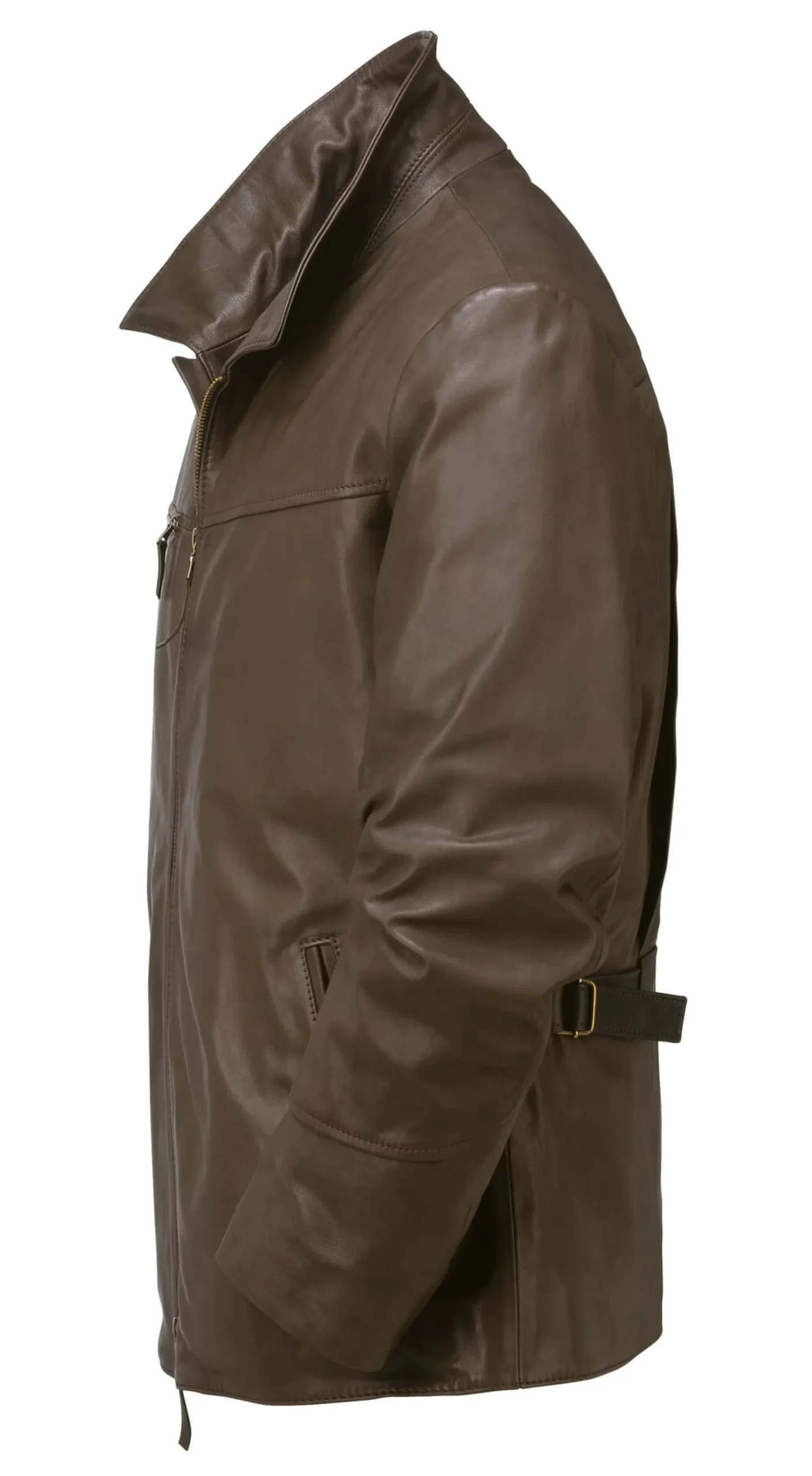 Bis über das Gesäß reicht diese von der Motorradbekleidung der 1960er Jahre beeinflusste Jacke. Das Leder kommt aus Italien, wo es chromfrei gegerbt wird. Die Spuren eines Tierlebens (Dornenrisse, Stiche) werden durch die Fassfärbung bewusst nicht zugespritzt und abgedeckt. Seitlich unterhalb der Rückenpasse aufspringende Falten erweitern den Spielraum der Schultern in der Vorwärtsbewegung, was auch im Leben ohne Motorrad von Vorteil ist. Per Gurt im Rücken lässt sich die Taillenweite regulieren. Zwei große Paspeltaschen sind im unteren Vorderteil eingearbeitet. Eine in die Teilungsnaht der Schulterpasse eingearbeitete rechte Brusttasche ist mit Reißverschluss zu schließen. Eine unter dem Zweiwegereißverschluss liegende Blende bietet Windschutz. Ein stabiler Baumwollköper dient als Rumpffutter, im Ärmel erleichtert ein kräftiger Viskoseserge das Anziehen.
