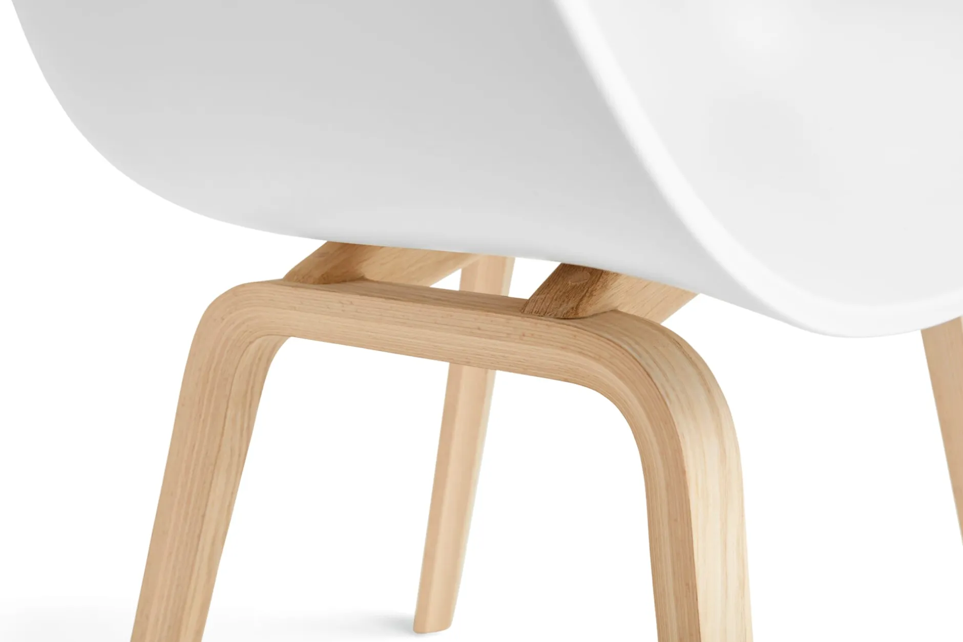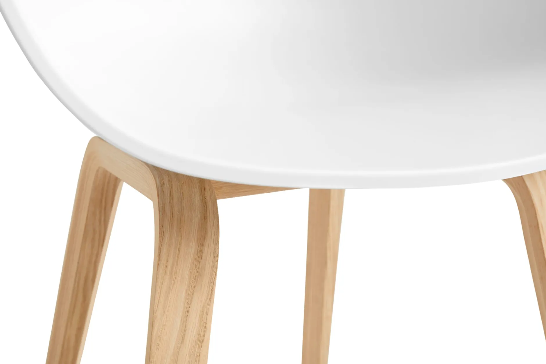 Formschöne, weit umschließende Sitzschale auf vierbeinigem Schichtholzgestell aus Buchenholz mit Eichenfurnier. Die filigrane und leicht elastische Sitzschale von ABOUT A CHAIR ECO besteht zu 100 % aus recyceltem Polypropylen. Dank eines neuen, besonders reinen Reyklats als Ausgangsstoff für die Sitzschale, zeigt diese Generation der ECO-Variante ein besonders reines weiß. Keine Spur mehr von Rückständen und Farbschleier.