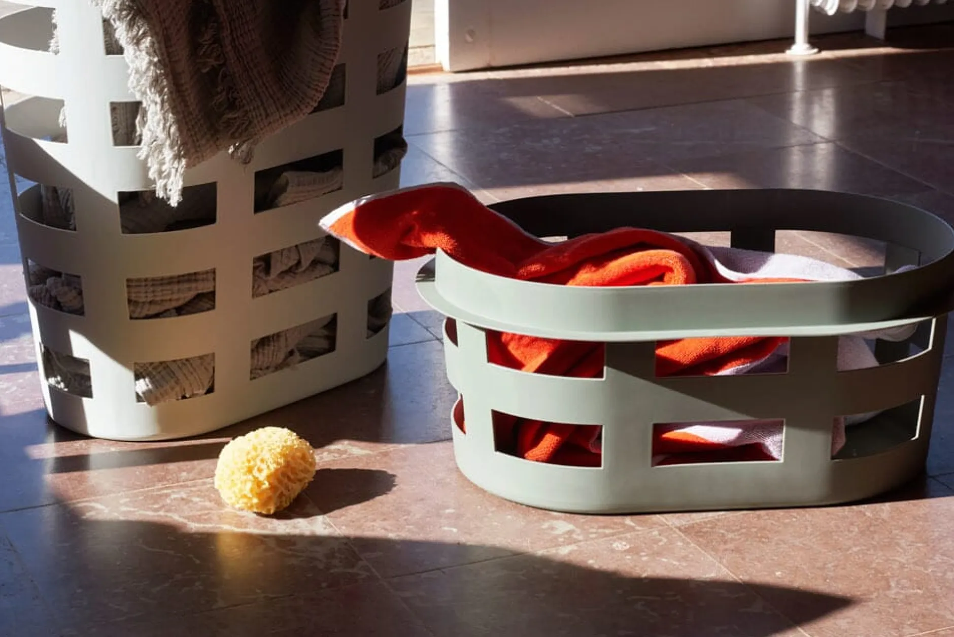LAUNDRY BASKET ist kleiner stapelbarer Ordnungsspender in Haushalt, Bad und Büro. Für Wäsche, Zeitung und Zeitschriften, formschön und gut handhabbar. Dank des robusten Materials auch im Außeneinsatz geeignet, zum Beispiel für die Apfelernte.