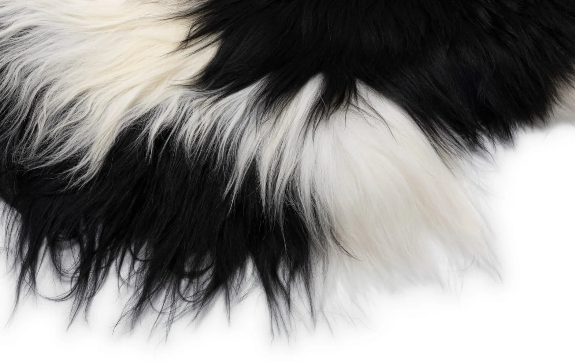 Dieses Fell stammt von Nordlandschnucken aus England oder Skandinavien. Von Natur aus robust und genügsam, haben sich die Tiere, deren Verwandte man auch je nach ihrem „Wohnort“ als Island- oder Grönlandschafe bezeichnet, dort hervorragend an das raue, kalte Klima angepasst. So ist ihr Wollvlies sehr dicht und das Haar deutlich länger als bei vielen anderen Nordischen Kurzschwanzschafen – und unglaublich seidig-weich. Ihr Fell ist schwarz oder weiß, teils auch schwarz-weiß gescheckt und manchmal meliert. Eine weitere Besonderheit dieser Schafrasse (für unsere Felle unerheblich, aber doch sehr interessant): Innerhalb einer Herde gibt es das sogenannte Anführerschaf, das dank seiner Veranlagung oder vererbten Fähigkeit in der Lage ist, die Herde durch gefährliches Gelände zu führen. Wichtig für unsere Felle hingegen ist, dass die Tiere nicht für den Zweck der Fellgewinnung gehalten werden, sondern wie seit Jahrtausenden als Woll-, Milch- und Fleischlieferant dienen. Die Nordlandschnucken können in ihrem natürlichen Lebenszyklus leben und werden daher nur zu bestimmten Zeiten geschlachtet. Ihr Fell wird nach dem Gerben weder gebleicht noch gefärbt und zeigt seine naturgegebene Farbe. Auch das Wollvlies behält seine natürliche Länge von etwa 15 Zentimetern und – hier müssen wir unsere Begeisterung noch einmal kundtun – seinen unvergleichlich seidig-weichen Griff. Jedes Tier hat seine individuelle Färbung und Größe, die Felle werden nach Farben sortiert, die Maße fallen jedoch leicht unterschiedlich aus.