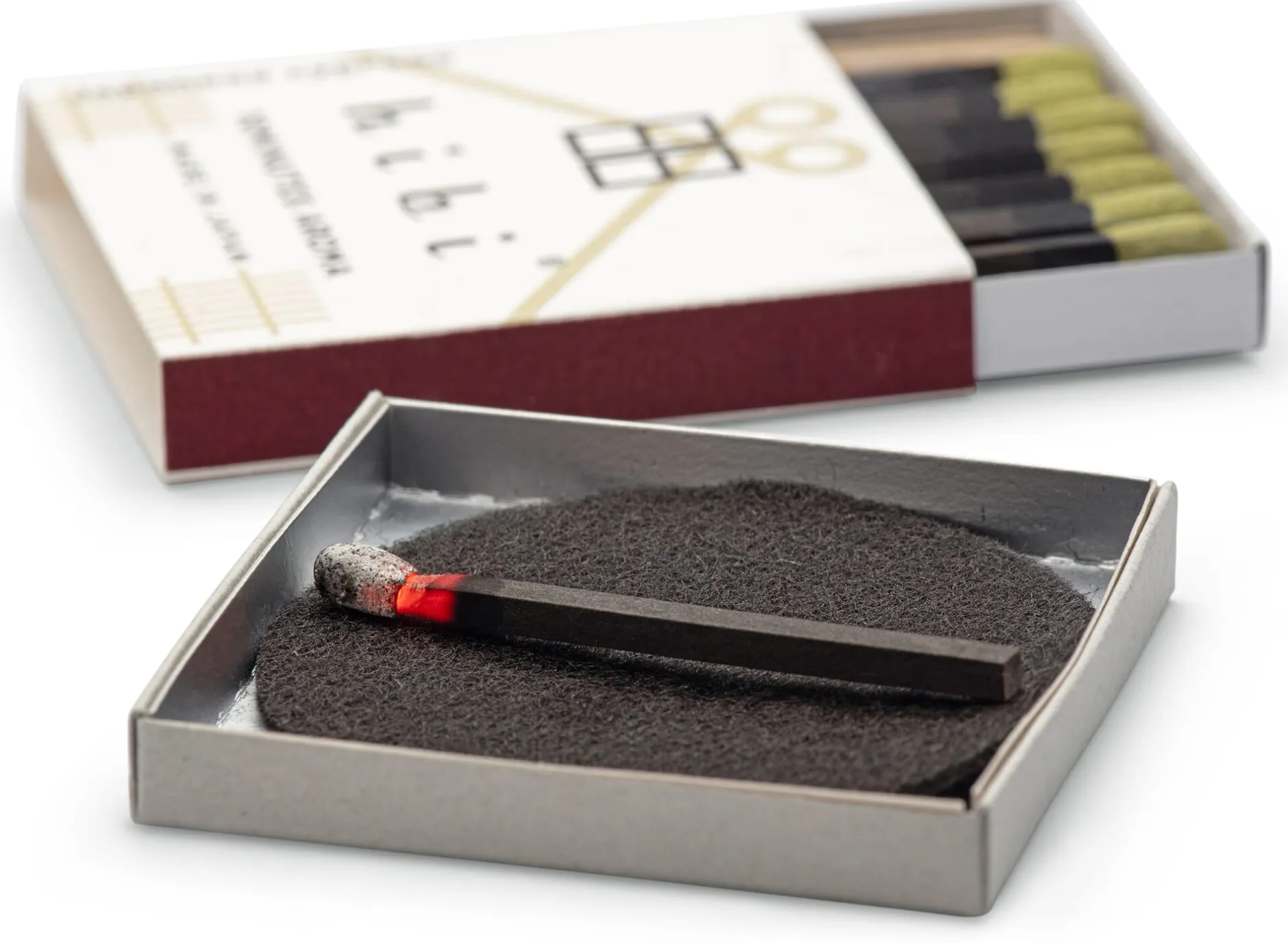 Die Idee zu diesen genialen Duftstreichhölzern hatte ein japanischer Streichholzhersteller. Die Suche nach einem zweiten Standbein – weil der Gebrauch von Streichhölzern seit Jahren stetig abnimmt und weil er selbst glühender Anhänger des Räucherns ist – brachte ihn auf den Gedanken, Räucherstäbchen im Kleinstformat zu entwickeln. Der richtige Partner für dieses Projekt wohnte gewissermaßen vor der Tür, denn am Firmenstandort in der Präfektur Hyogo hat nicht nur die Streichholzproduktion eine lange Tradition, sondern auch die Fertigung von Räucherstäbchen. 2011 begannen Kobe Match (seit 1929 mit der Fertigung von Streichhölzern befasst) und die 1897 gegründete Weihrauchmanufaktur Daihatsu die gemeinsame Entwicklungsarbeit und brachten drei Jahre später die kleinen duftenden Hölzchen auf den Markt. Den Aspekt des täglichen Räucherns nimmt das Logo übrigens auf: Es zeigt zweimal das chinesische Schriftzeichen 日 für Tag.