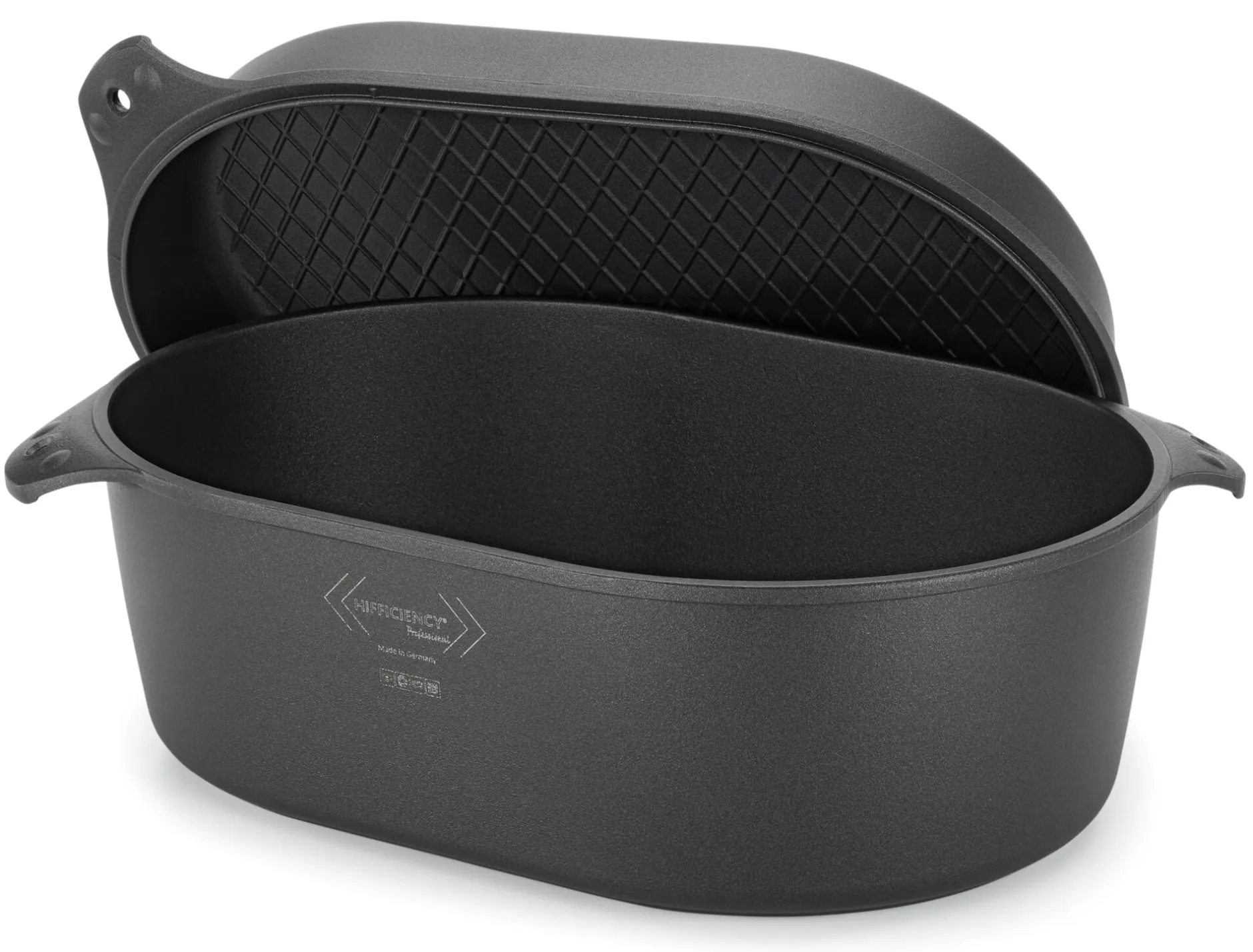 Mit diesem Kochgeschirr ist Abwechslung garantiert: Ob als (offener) Bräter oder Schmortopf, Backform oder Bratrohrpfanne, unser Bräter mit Grilldeckel ist überaus vielseitig. Die klassische Martinsgans können Sie darin ebenso zubereiten wie Schmorgerichte mit Fleisch à la Bœuf Bourguignon, Coq au Vin & Co. Es spricht aber auch nichts dagegen, einmal ein französisches Cassoulet, italienische Pasta e Fagioli, vegetarisches Wiener Erdapfelgulasch oder Ofengemüse für eine herbstlich-rustikale Gemüsesuppe aufzusetzen. Der zugehörige Deckel mit Grillmuster innen ist ebenso wie das Unterteil induktionsgeeignet und lässt sich auch separat verwenden, etwa um ein gutes Steak zu grillen, Gemüse oder Fisch zu braten und zu dünsten … Im Ofen gibt der Deckel zudem eine formidable Auflaufform ab.