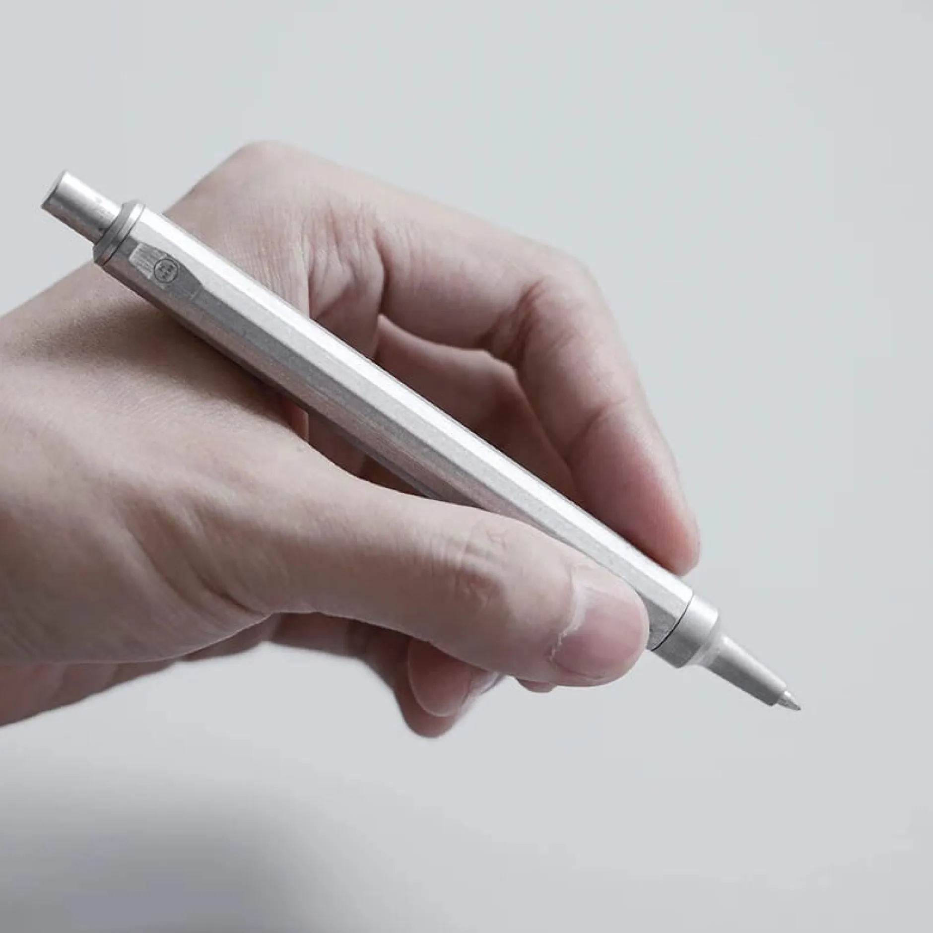 Leichtgewichtiger und dank seiner Großraummine sehr ausdauernder Kugelschreiber. Seine Leichtigkeit verdankt er dem Gehäuse aus Aluminium, seine ungwöhnliche Optik dem Gehäuse mit zwölf Kanten (für Altgriechisch-Fans: mit dodekagonalem Querschnitt). Wir bieten den Kugelschreiber in zwei Varianten an: mit trommelpoliertem Gehäuse und dem Charme eines soliden Werkzeugs oder mit schwarz eloxiertem Gehäuse mit fein strukturierter Oberfläche. Praktisch (und auch schön) ist die Schiebeschachtel aus stabiler Pappe, in der das Schreibgerät geliefert wird und das auch hervorragend als Etui für unterwegs fungiert. Ersatz für die schwarze Großraummine (von Schmidt, Strichstärke M), mit der der Kugelschreiber bestückt ist, finden Sie bei uns im Sortiment.
