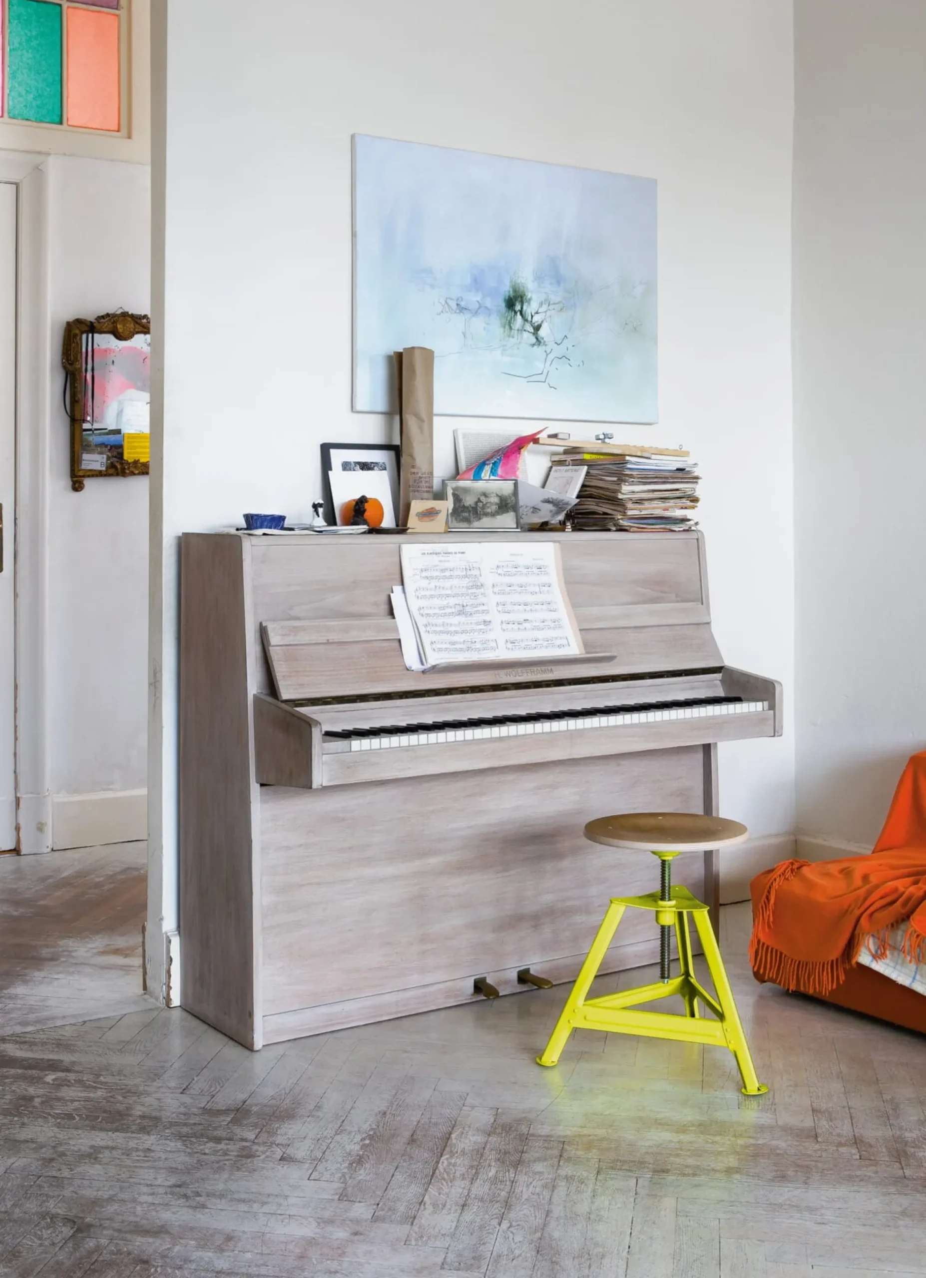 Die Hocker in den Farben Leuchtgelb RAL 1026, Pastellblau RAL 5024 und Verkehrsweiß RAL 9016 werden exklusiv für MAGAZIN produziert.