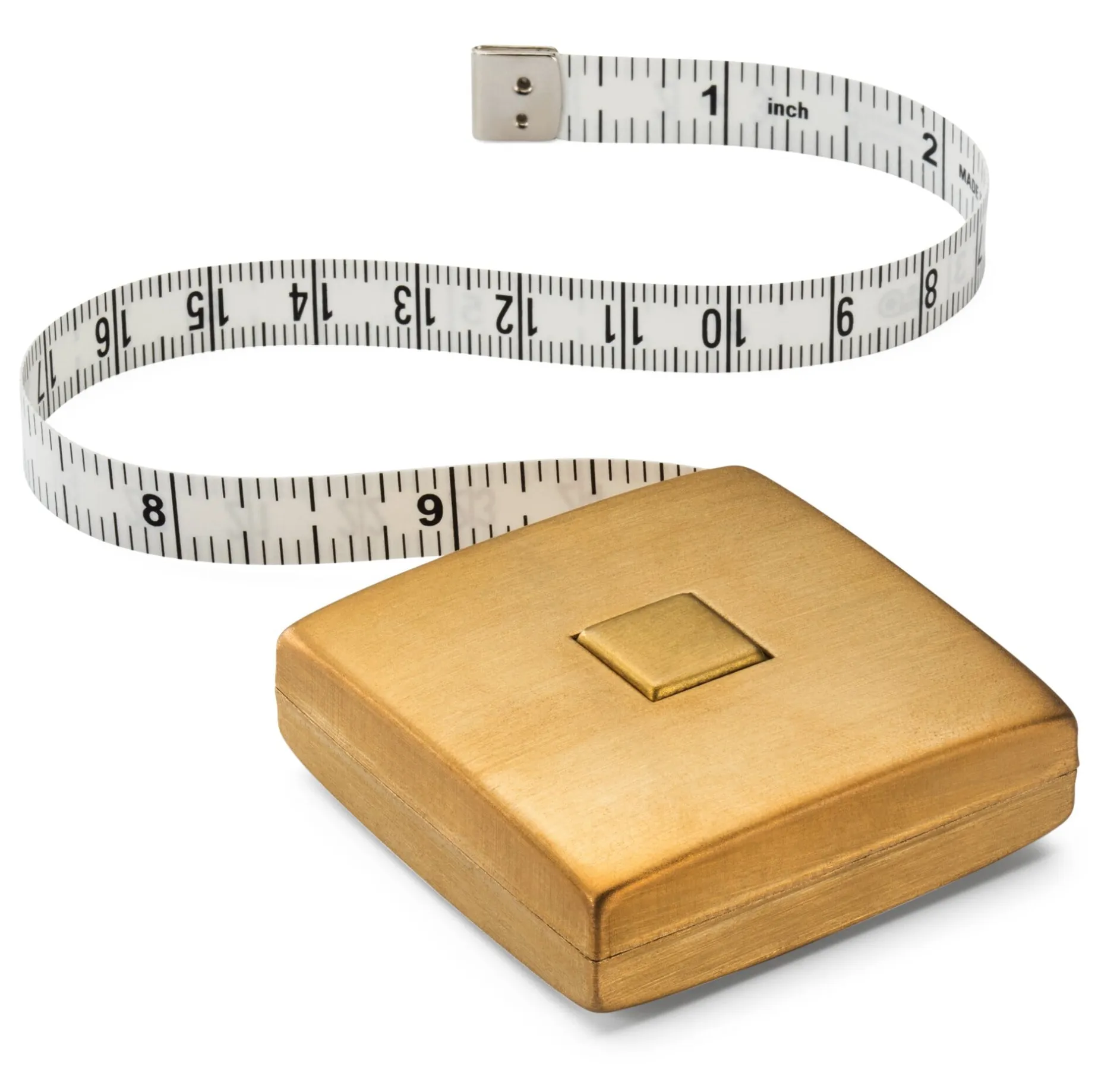 Dass Maßbänder im Gehäuse auch richtig schick sein können und ihr Gehäuse dabei nicht mal wie eines für Maßbänder aussehen muss, beweist dieses Modell eines deutschen Herstellers. Aus gebürstetem Messing gefertigt, könnte es ebenso gut eine Schmuckdose sein. Die Oberfläche entwickelt mit der Zeit und dem Gebrauch eine individuelle Patina, wie sie für diese Art Material typisch ist und die das Maßband gleichzeitig später auch als das Ihrige ausweist. Die Gefahr, dass jemand das Maßband aus Versehen in die eigene Tasche steckt, wird also zum einen gemindert – andererseits auch erhöht, weil das gute Stück schnell Begehren weckt …