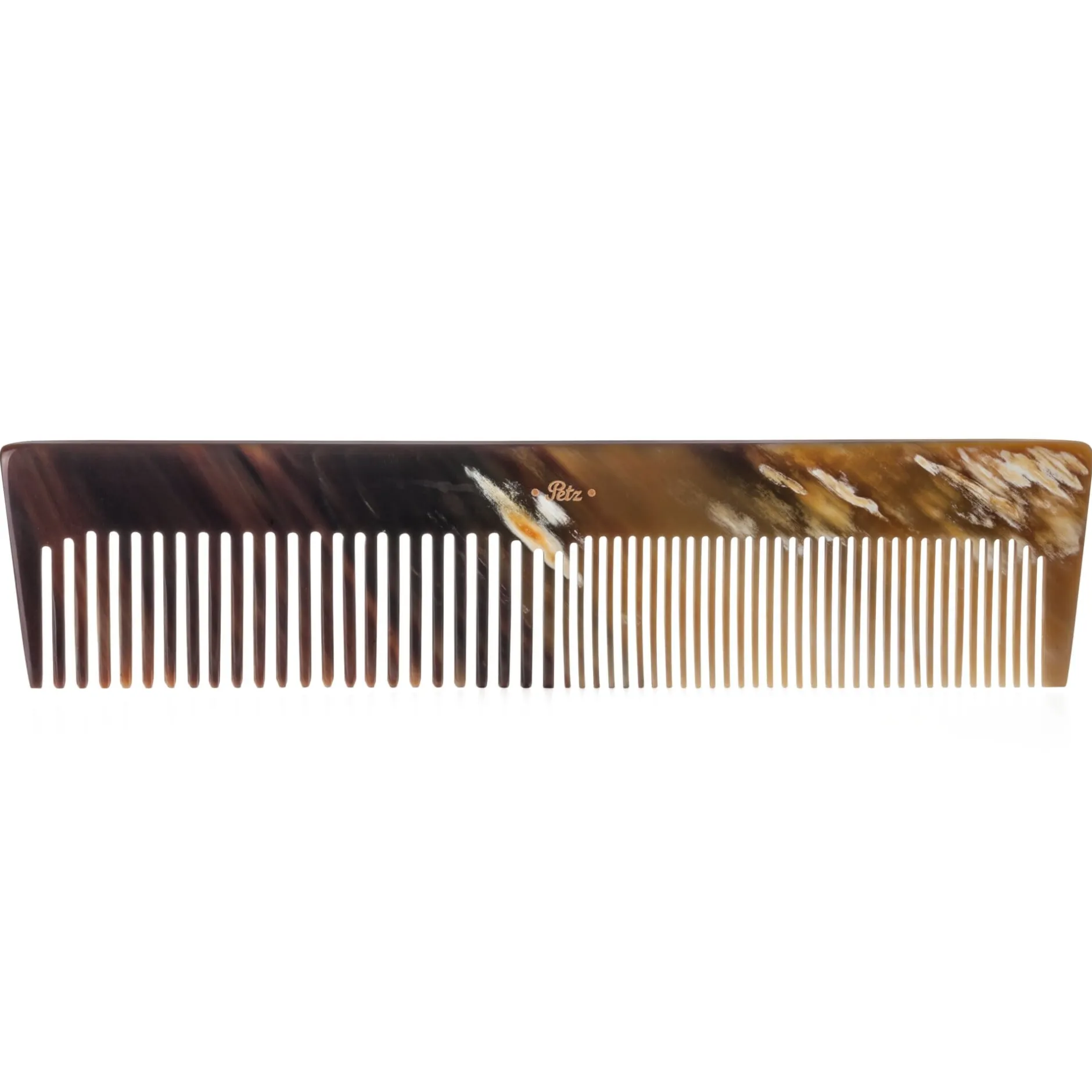 Unsere Auswahl an Kämmen – aus Horn, Holz und Ebonit – ist zudem an der jeweils höchsten Verarbeitungsqualität orientiert (nur so kann das Haar schonend gekämmt werden): Zähne und Zahnzwischenräume sind in jeweils materialgerechten Verfahren sorgfältig gesägt, abgerundet und poliert.