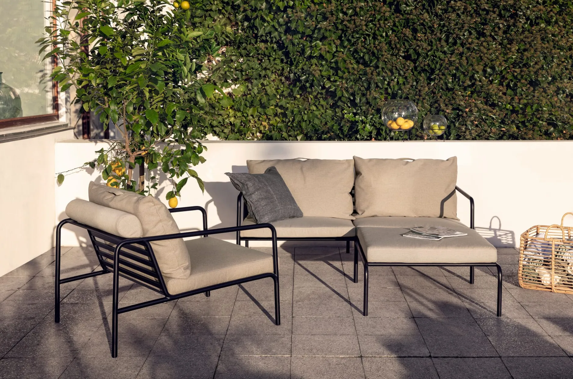 Wohnraum unter freiem Himmel! Die Polstermöbel der Serie AVON bieten hohen Sitzkomfort in filigraner Optik. Zudem sind sie wetterfest, die genutzten Stoffe sind im hohen Maß UV-beständig. Das macht AVON zum perfekten Möbel für Garten und Terrasse. Sämtliche Kissen sind leicht abnehmbar, die Rückenpolster besitzen ein festgenähtes rollenförmiges Polster, das die Kissen auf dem Profilrahmen positioniert. Die pulverbeschichtete Stahlkonstruktion ist leicht und mobil, gut zu transportieren und somit schnell im Garten und auf der Terrasse an einem anderen Platz arrangiert.