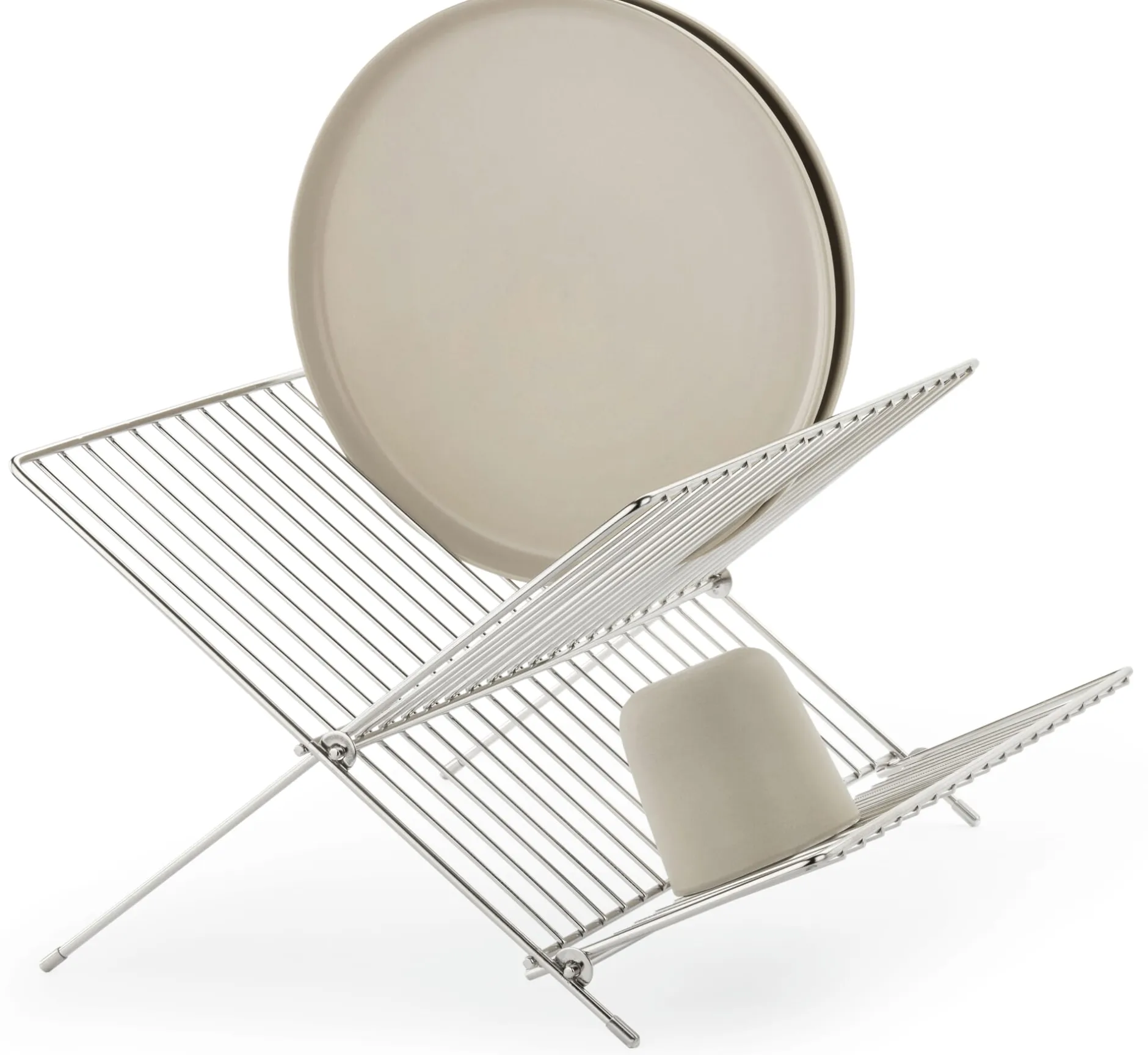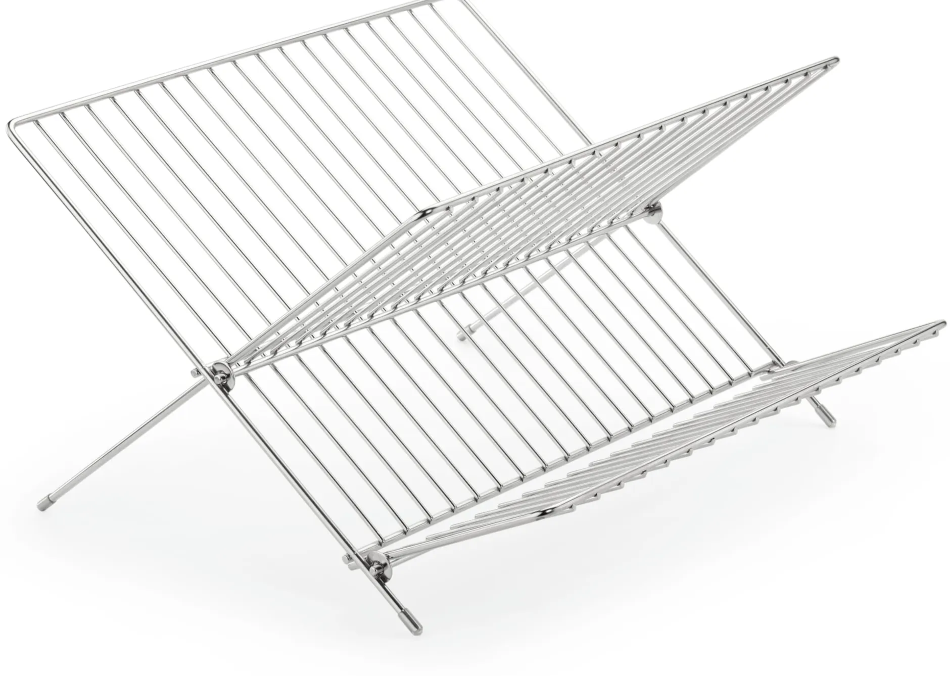 Von außerordentlicher Qualität, solide und sauber verarbeitet wie die „großen“ Abtropfgestelle des italienischen Herstellers, ist auch dieses faltbare Abtropfgestell. Es besteht ganz aus rostfreiem Edelstahldraht (Rahmendraht 5 mm) mit einer elektropolierten Oberfläche, die sich sehr gut reinigen lässt. Gummifüße sorgen für Standfestigkeit und schonen die Oberfläche. Bei Nichtgebrauch lässt sich das Abtropfgestell platzsparend zusammenfalten. Es eignet sich daher besonders für kleine Küchen oder auch wenn die Spülmaschine normalerweise Ihren Abwasch erledigt, Sie aber hin und wieder etwas mit der Hand spülen möchten.