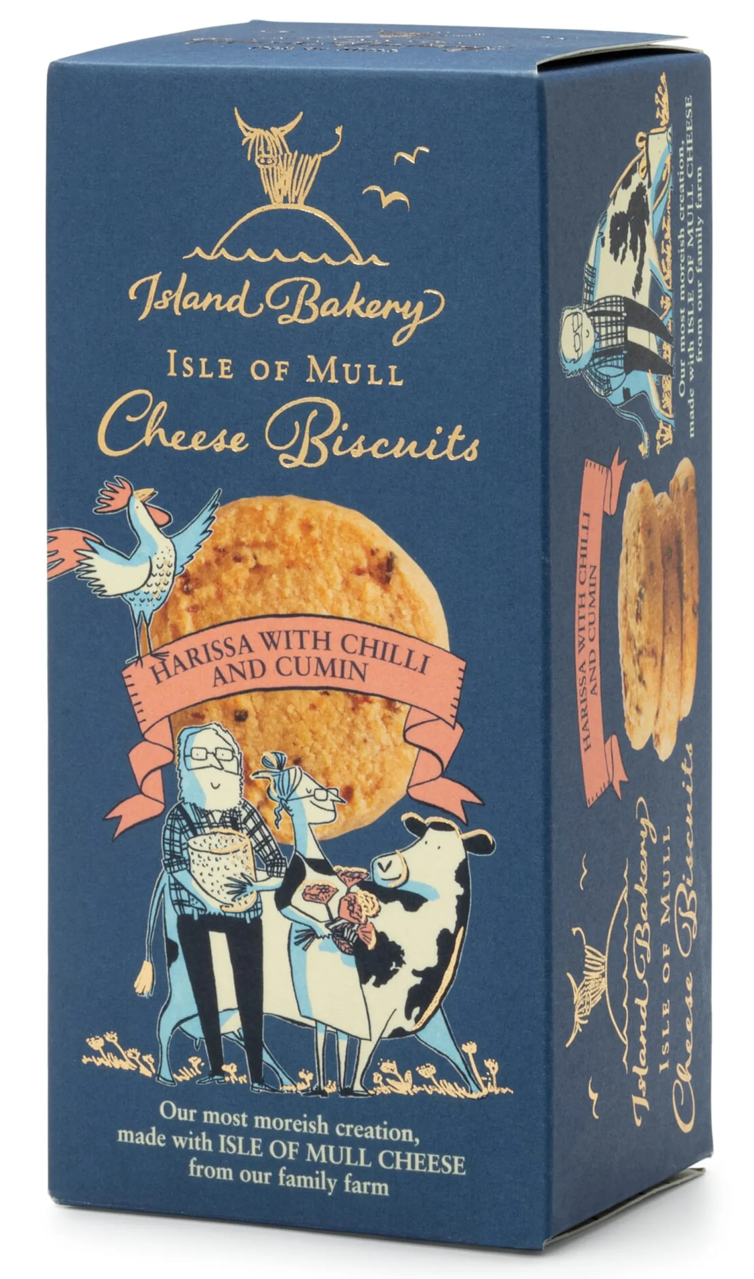 Zwei Zutaten sind im harmonischen Zusammenspiel für den würzigen Geschmack dieser üppigen Kekse verantwortlich. Da ist zum einen traditioneller, gereifter Bauern-Cheddar aus Rohmilch von Rindern, die mit saftigem Gras und Gerste aus der Tobermory-Brennerei gefüttert werden. Er stammt von einer Farm bei Tobermory. Und da ist zum anderen Harissa-Paste, jenes berühmte nordafrikanische und nahöstliche Grundnahrungsmittel, bei dem Chili mit Knoblauch und anderen erlesenen Gewürzen vermischt wird. Die von der Island Bakery verwendete Mischung ist warm, ohne scharf zu sein, mit erdigem Kreuzkümmel im Vordergrund und einer Reihe anderer duftender Gewürze. Die zartschmelzenden, gewürzten Kekse schmecken pur, es lohnt sich aber auch, einmal einen trockenen Riesling oder einen fruchtigen Rotwein dazu zu probieren.