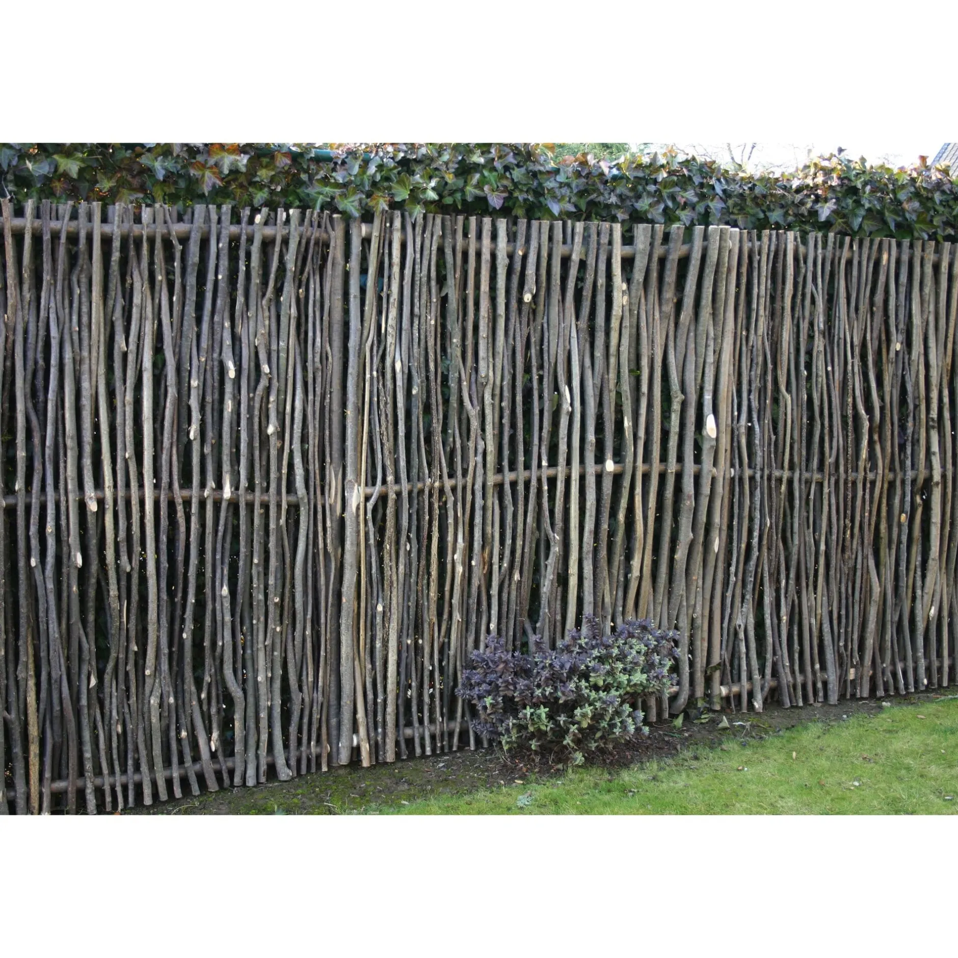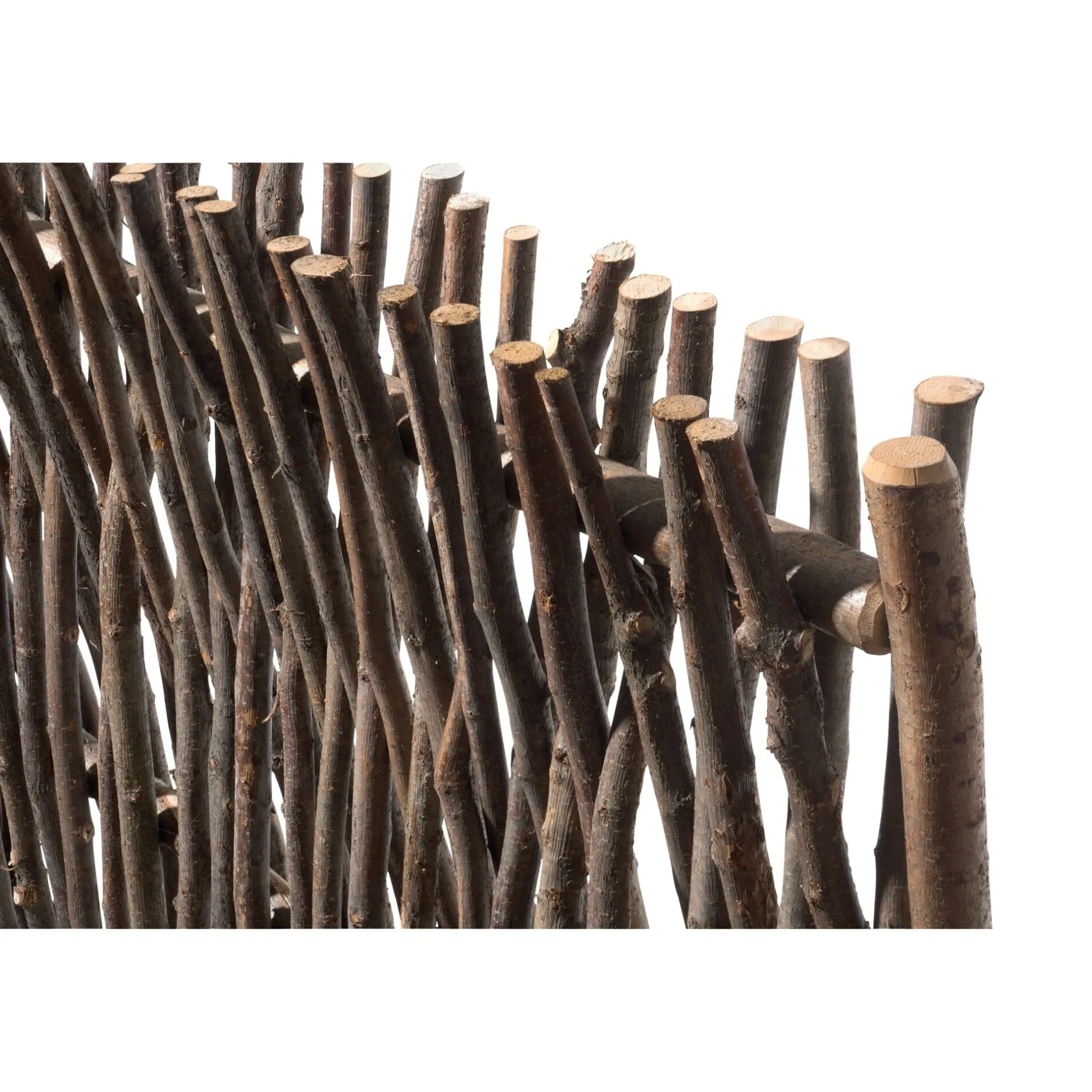 Aus Haselruten. Höhe 1,8 m, Breite 1,5 m, Tiefe 12 cm. Gewicht 28 kg.