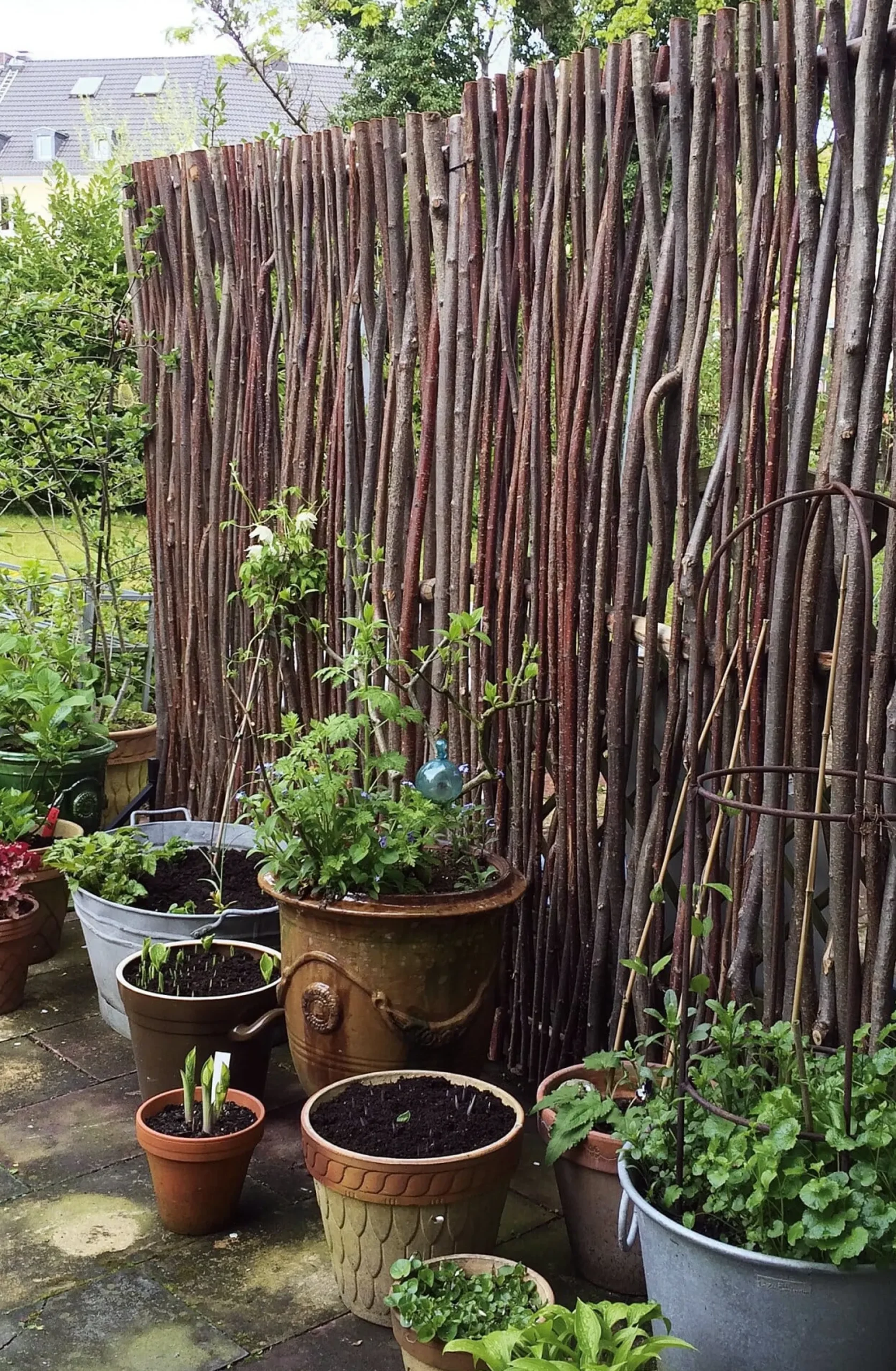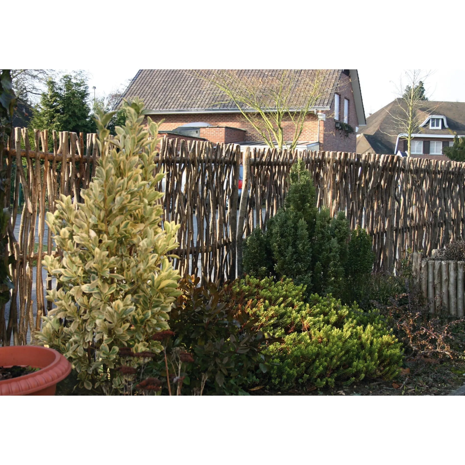 Flechtzäune aus Haselruten gelten als die ursprünglichste Form ihrer Gattung – als Grundstückseingrenzung hat man sie bereits in der Eisenzeit genutzt. Haselgeflecht ist äußerst belastbar und stabil: Sie können mit einer Standzeit von bis zu 15 Jahren rechnen, denn Haselnussholz ist ohne jede weitere chemische Behandlung oder Imprägnierung wetterbeständig und lange haltbar. Die Naturzäune werden nach alter handwerklicher Tradition von erfahrenen Flechtern gefertigt. Die Erntezeit für die Haselruten fällt in die Zeit nach dem ersten Frost, dann nämlich ist das Holz am härtesten. Vor der Weiterverarbeitung werden die Ruten in warmem Wasser eingeweicht, damit sie die zum Flechten nötige Biegsamkeit erhalten. Als funktionelles Element – in Form eines Sichtschutzes – sind die Zäune ebenso schmuck wie als gestalterisches – in Form einer vollkommen natürlichen Rankhilfe.