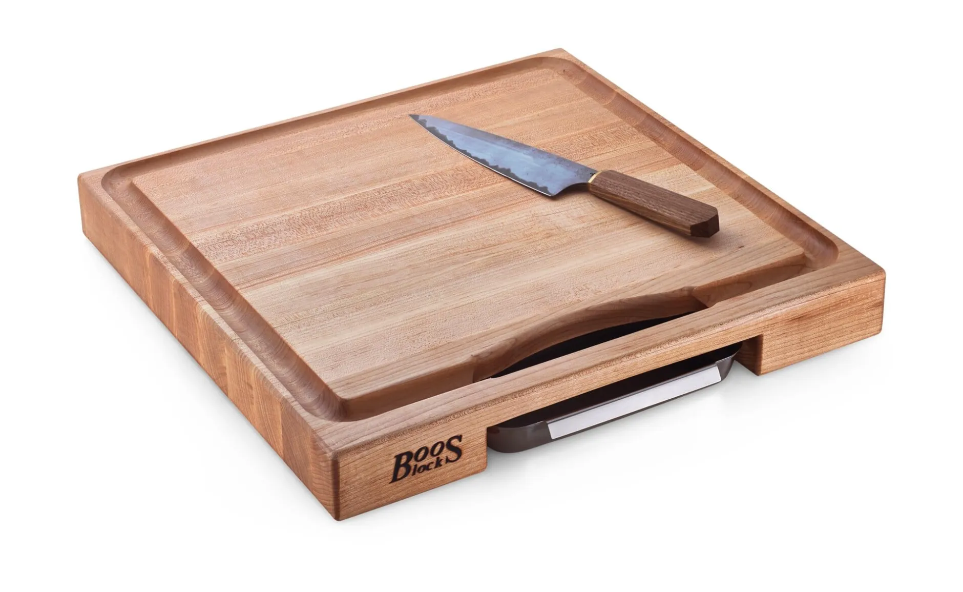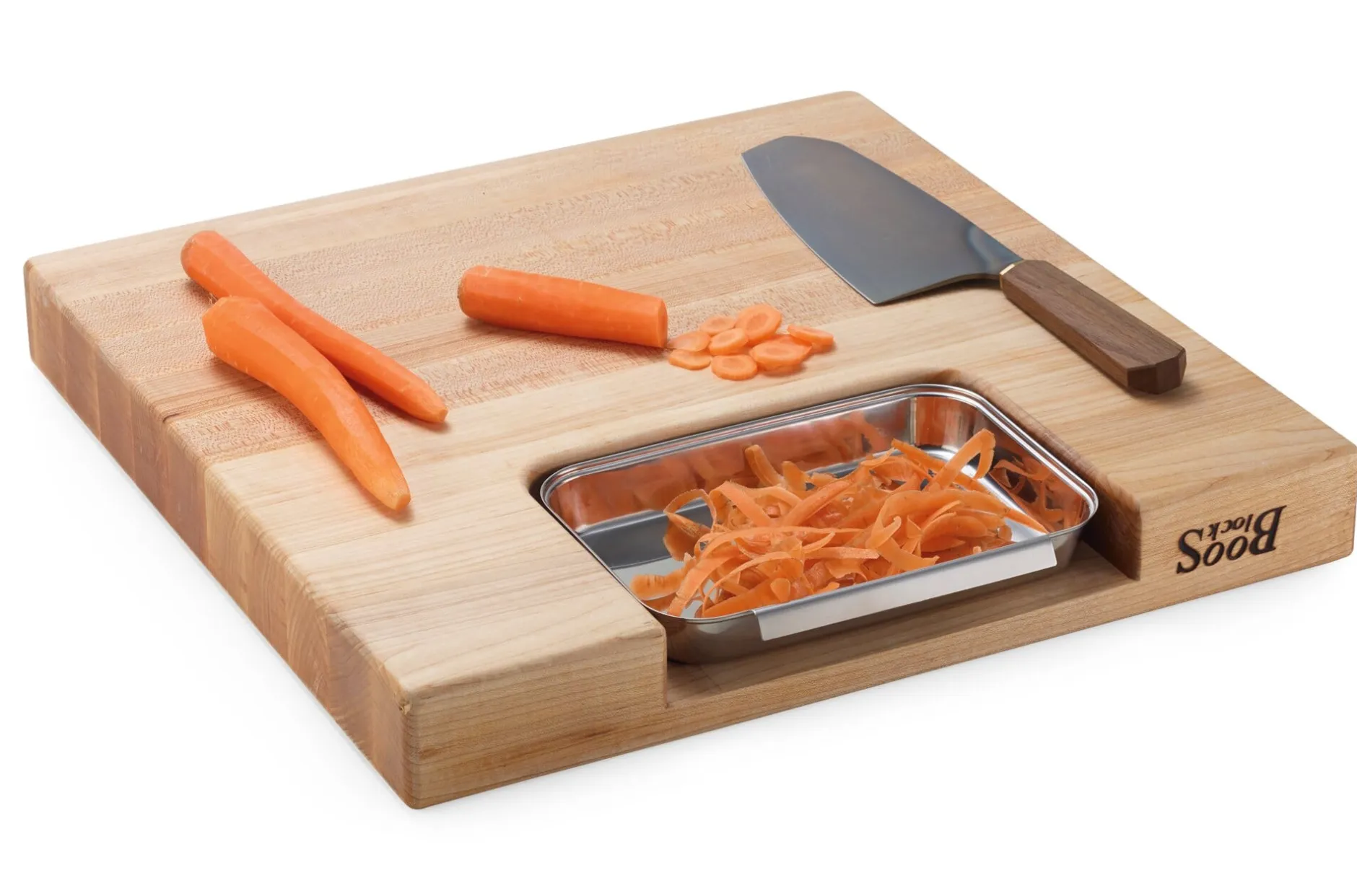 Es wird bei John Boos & Co. in Effingham, Illinois, gefertigt. Im Jahr 1887 noch als Schmiede gegründet, entwickelte sich die Firma Boos bald zu einer holzverarbeitenden Werkstatt mit überregionalem Ruf. Das mag reiner Zufall gewesen sein, da der eigens konstruierte hölzerne Prellbock, der nur dazu gedacht war, die harten Schläge des Schmiedehammers aufzufangen, bald das Interesse des örtlichen Metzgers fand. Als einige Jahre darauf der deutsche Einwanderer Adalbert Gravenhorst den Betrieb kaufte, hatte man sich jedoch bereits auf die Fertigung von Hackblöcken für den Metzgereibedarf spezialisiert. Mit der Pariser Weltausstellung 1900 kamen diese erstmals nach Europa. Heute findet man vor allem Schneidbretter aus Ahorn von Boos in Restaurantküchen überall auf der Welt.