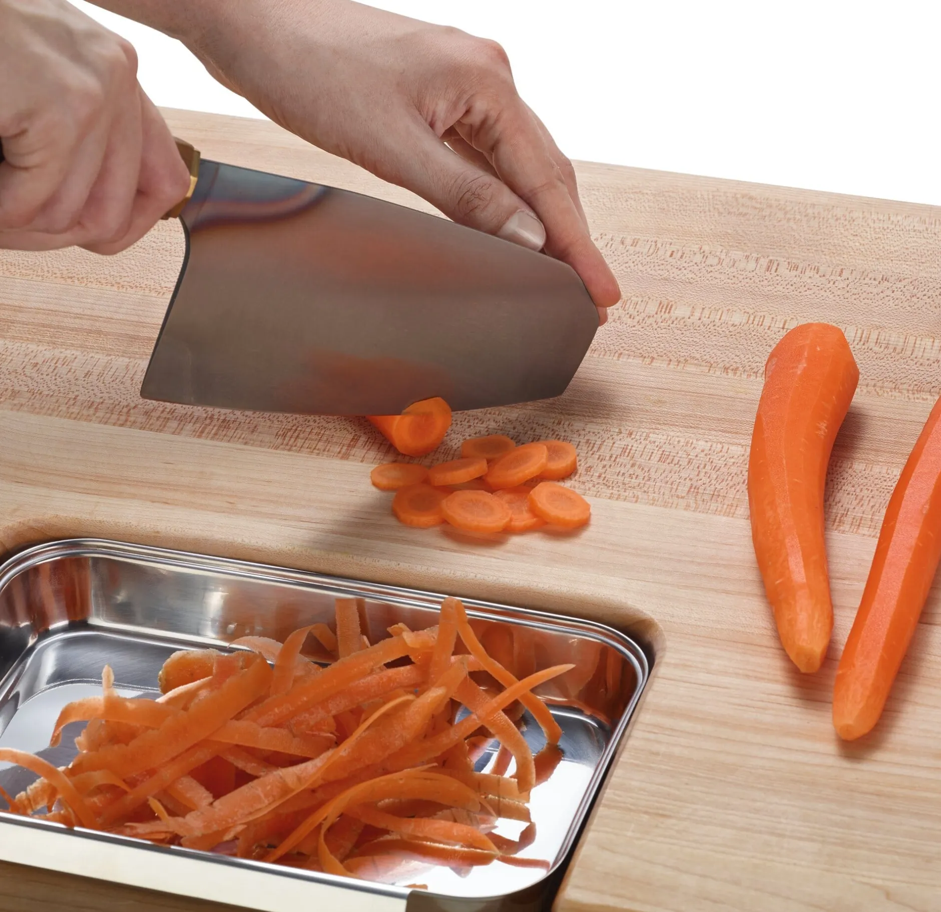 Das Holz des Ahornbaumes ist widerstandsfähig und sehr hart, aber immer noch geschmeidig genug, den Gebrauch von Fleischklopfer und Kochmessern abzufedern, ohne deren Klingen in Mitleidenschaft zu ziehen. Das Holz wird im Ofen getrocknet und von Ästen und Rissen gründlich befreit, bevor es der Länge nach gesägt, geleimt und dann erst zu Brettern geschnitten wird. Die Kanten der Schneidbretter werden rundgefräst, und das Holz wird glattgeschliffen.