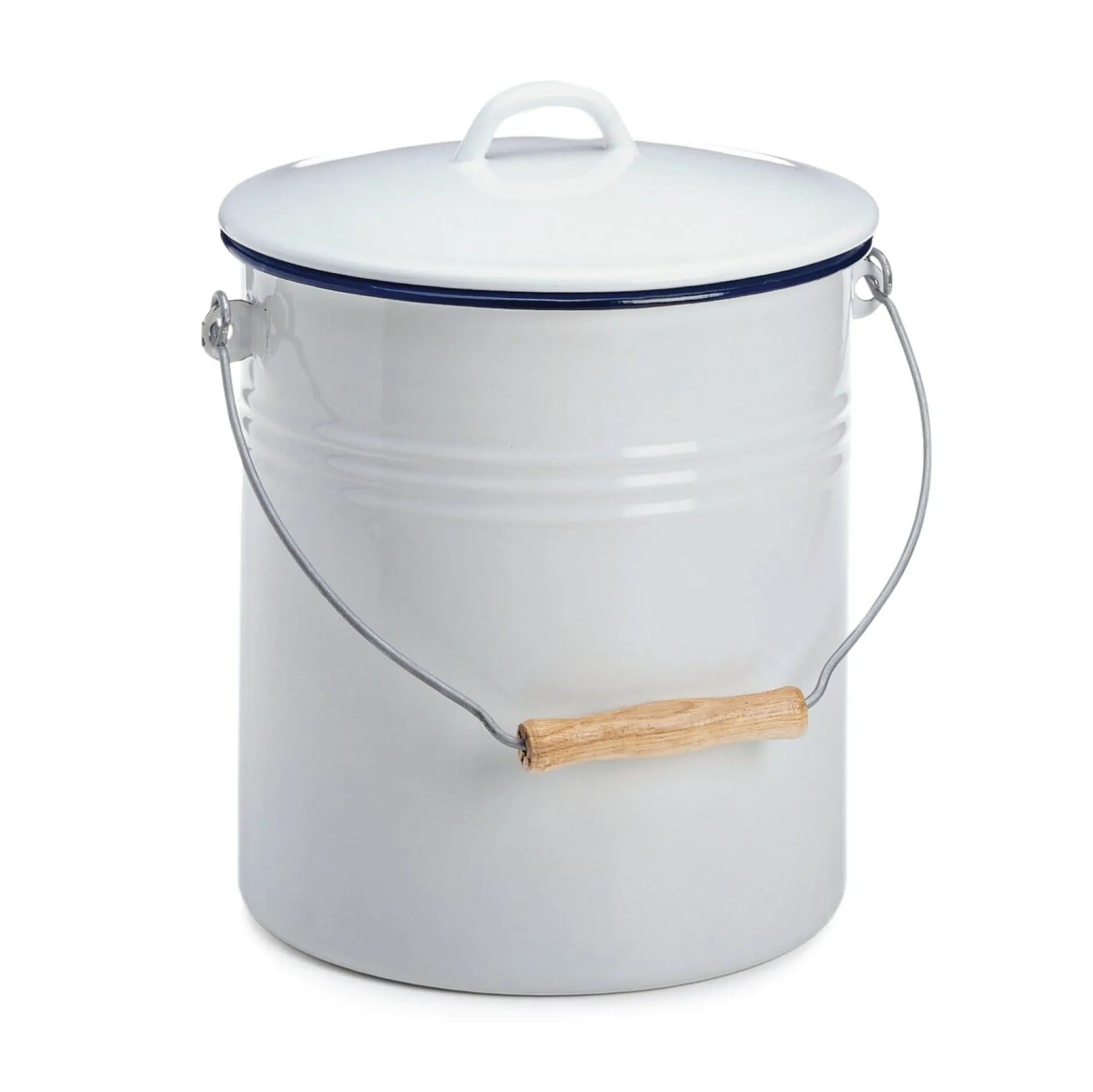 Vielseitig einsetzbar: 10-l-Eimer mit Deckel und einer Holzrolle am Tragegriff. Aus Rumänien.