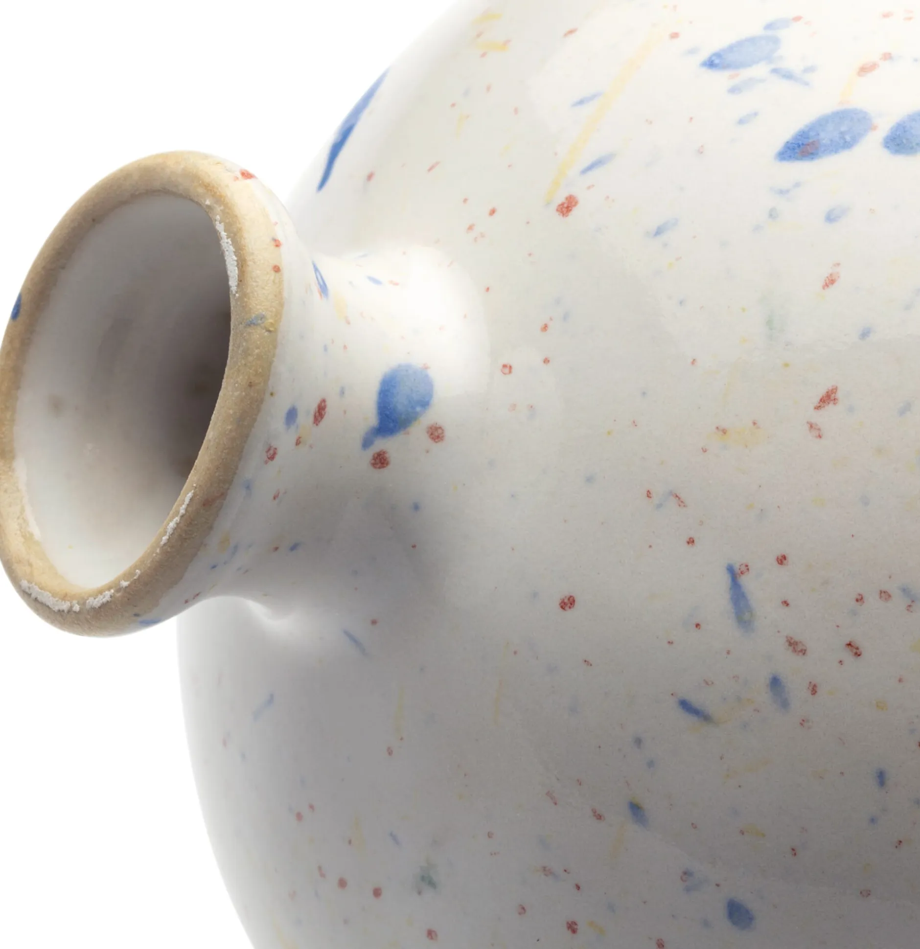 Keramik (Steinzeug) glänzend glasiert. Höhe 11 cm, Ø 9 cm. Öffnung Ø 1,5 cm. Gewicht 150–200 g. Hergestellt in Deutschland.