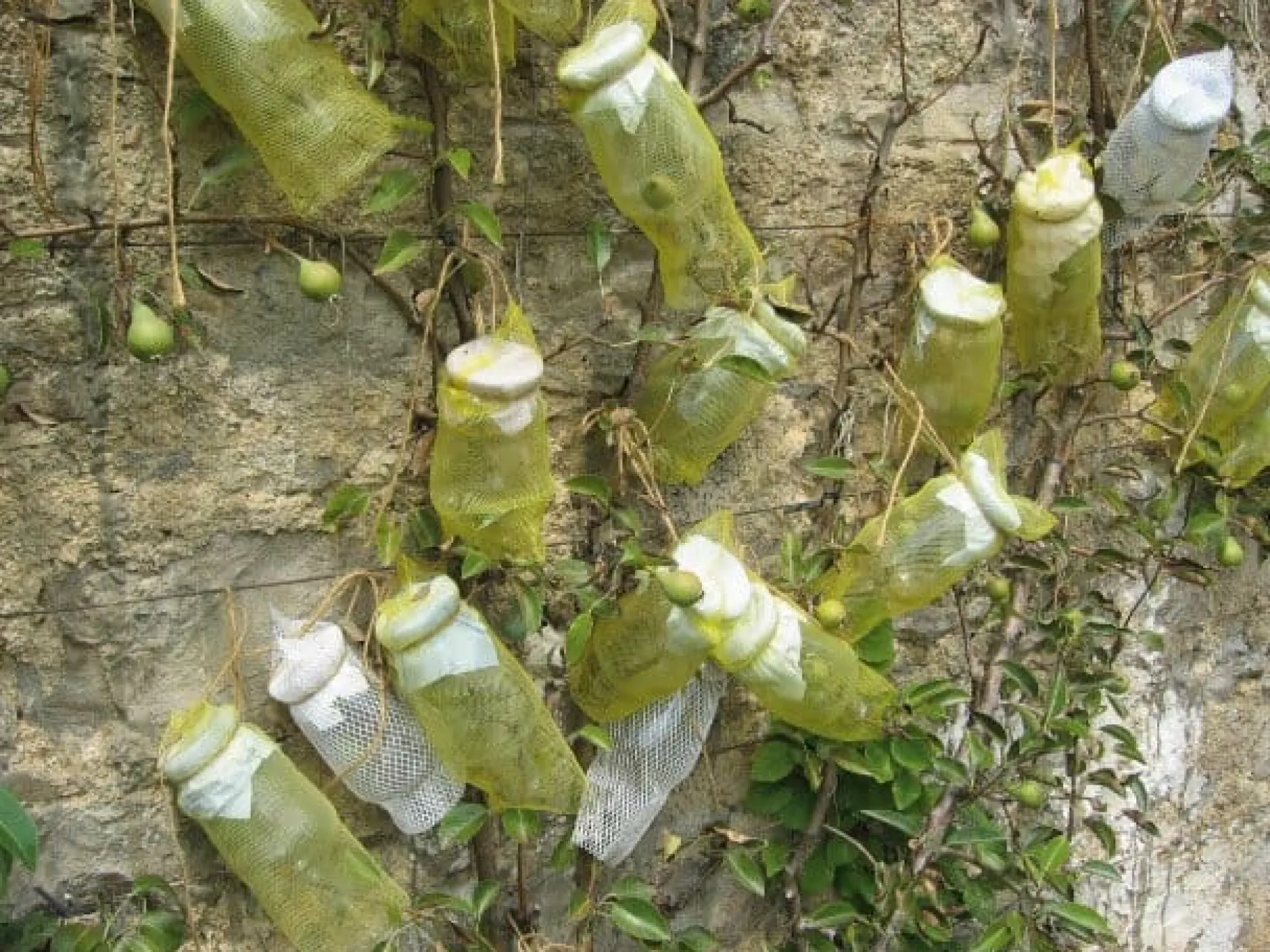 Sie wächst hinein: In der Kartause Pleterje unterhält man Spalierkulturen von Birnbäumen, an denen nach dem ersten Fruchtansatz unzählige Flaschen befestigt werden. Die Birne entwickelt sich dann in der Flasche – wie in einer Art Miniaturtreibhaus – zur vollen Größe und Reife, bis die Flaschen „geerntet“ werden können. Diese werden gereinigt, mit Birnenbrand aus der eigenen Destillerie aufgefüllt und zur Reifung einige Zeit gelagert. Der Vorteil: Frische Fruchtaromen aus der Birne werden extrahiert und verleihen dem Getränk jenen entscheidenden Zuwachs an Duft und Fruchtigkeit, um dessentwillen sich die Pflege der „Flaschenbäume“ voll und ganz auszahlt.