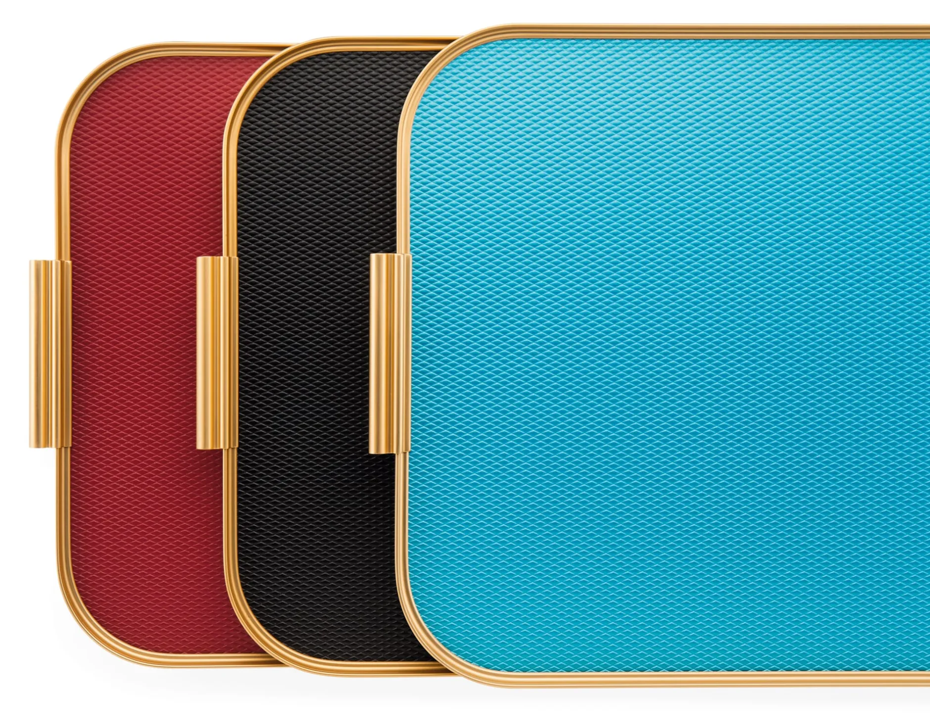 Seit 1947 produziert der Londoner Hersteller Kaymet Tabletts und Servierwagen aus Aluminium, die vor allem in Hotels, Krankenhäusern und der Gastronomie Verwendung finden. Das markanteste Merkmal der in einen Rahmen aus Aluminiumprofilen eingefassten Tabletts ist die rautiert strukturierte, farbig eloxierte Oberfläche des Bodens. Diese befördert die Stabilität des Tabletts, soll die Rutschfestigkeit erhöhen und kommt bei den helleren Farbvarianten besonders gut zur Geltung.