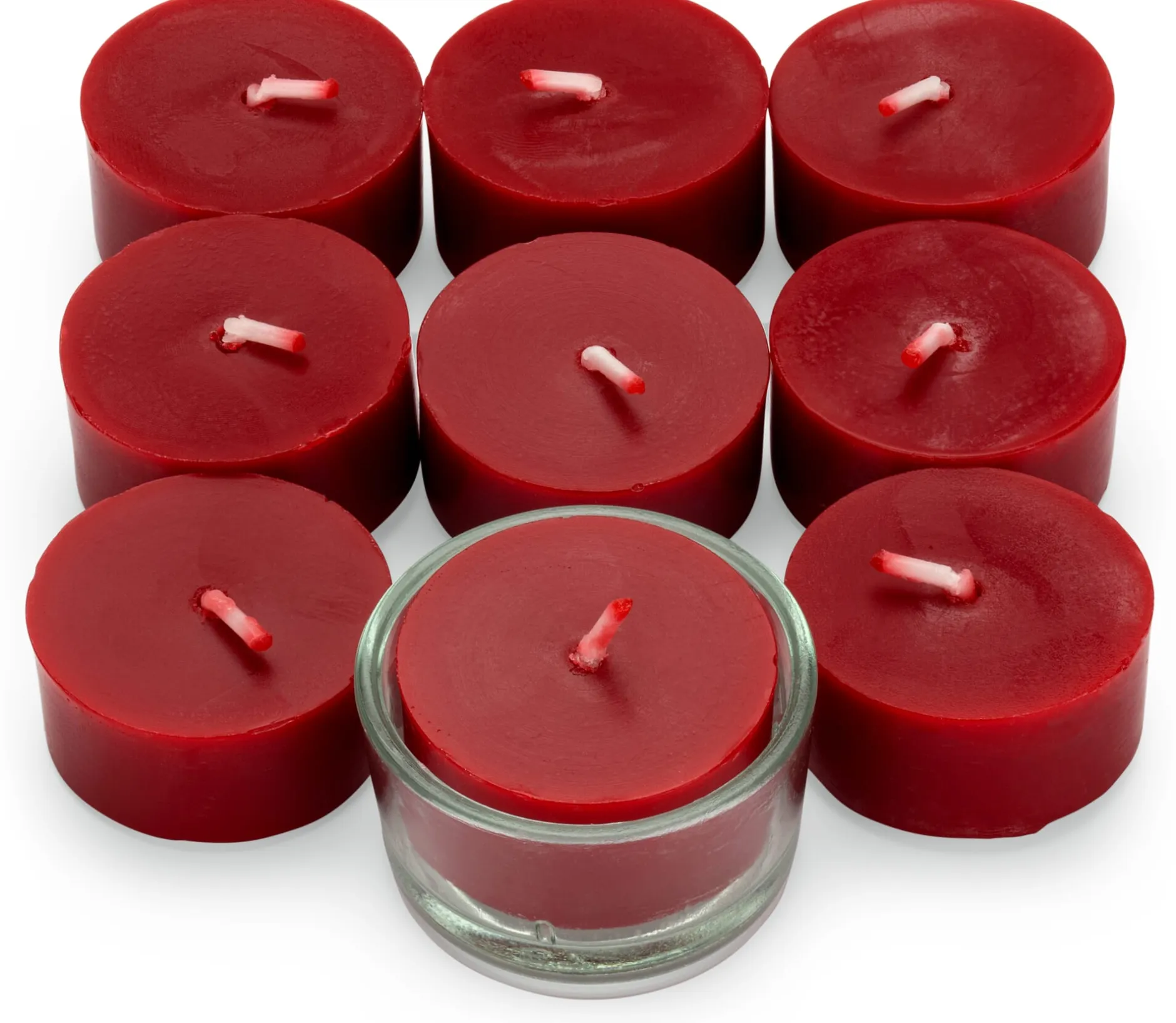 100% Bienenwachs. 9 Teelichte, jeweils Ø 3,5 cm, Höhe 1,7 cm. Inkl. 1 Teelichtglas, Ø 4 cm, Höhe 2,5 cm. Brenndauer je Teelicht ca. 3,5 Stunden. Immer in passenden Teelichtgläsern abbrennen.