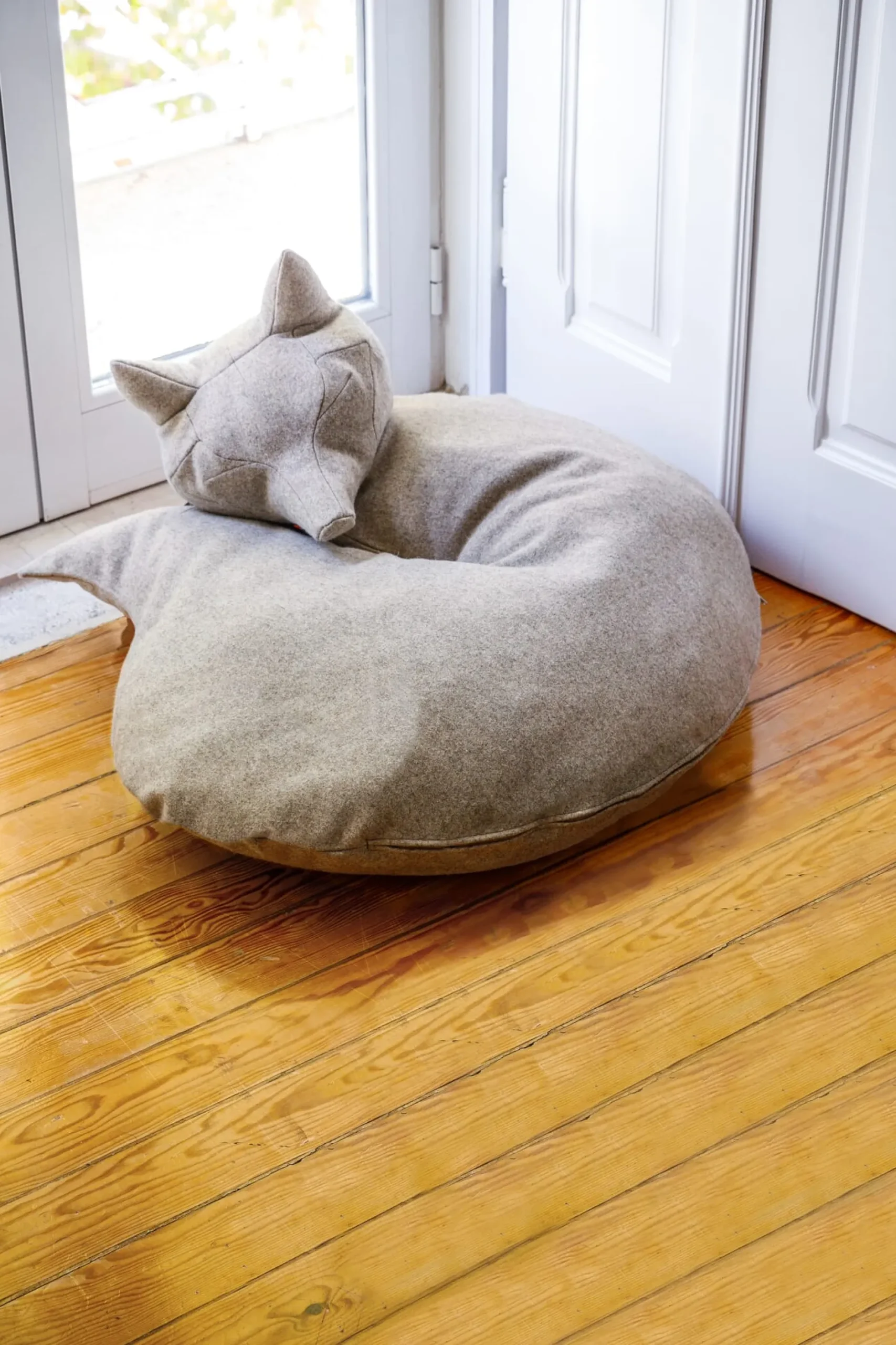 Übergroßes Kissen zur Nutzung auf dem Sofa oder dem Boden. Mit einer Hülle aus robustem Wolltuch.