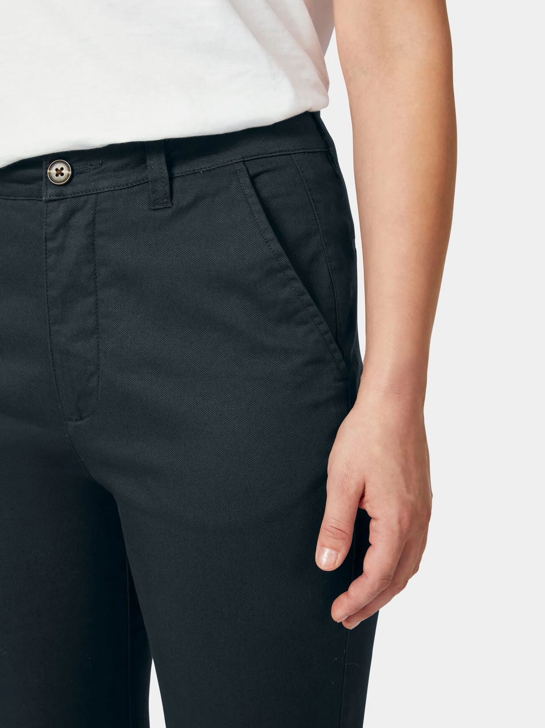 98% Baumwolle, 2% Elastan. Knopf und Reißverschluss aus Kunststoff. Hergestellt in Indien.