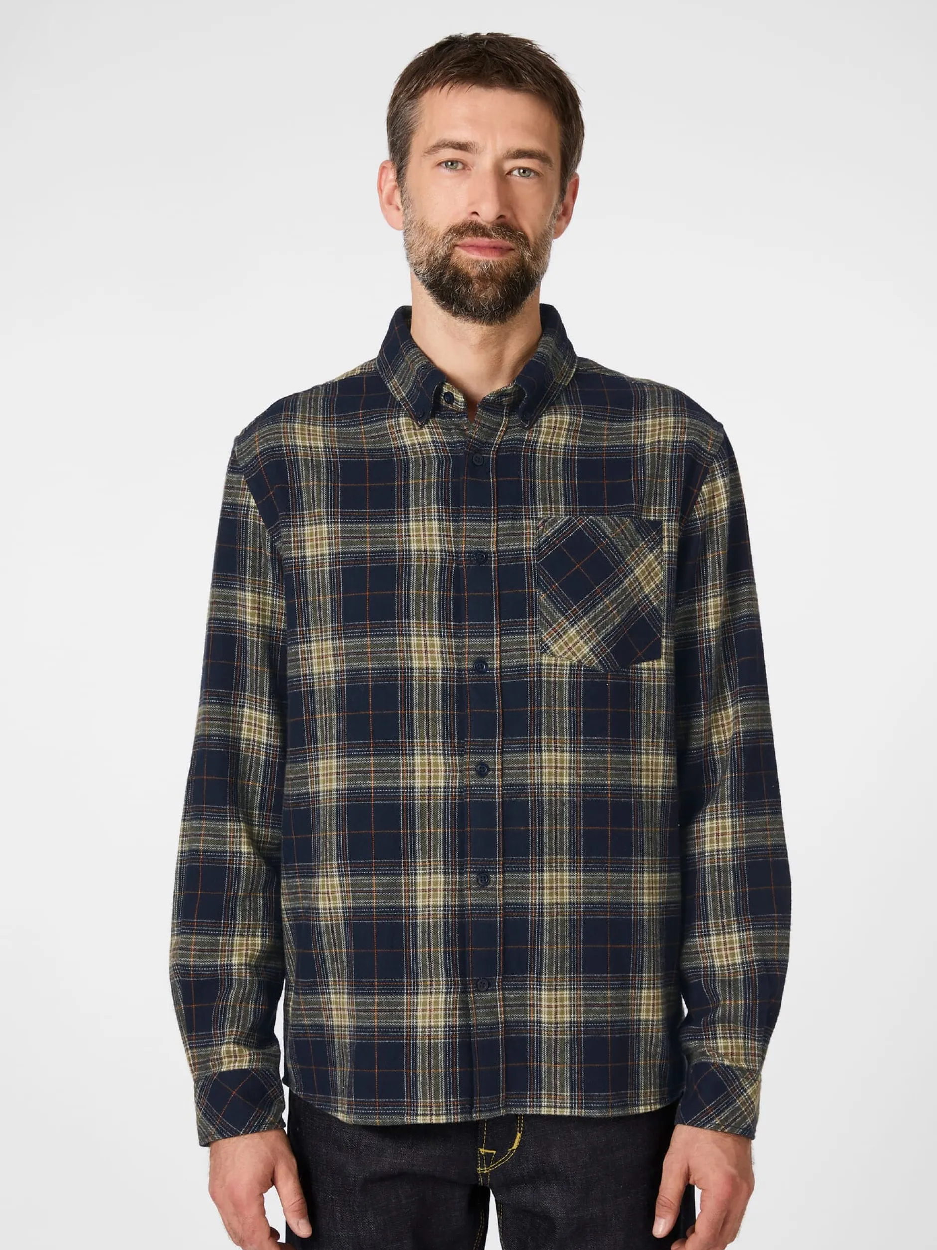 Knowledge Cotton Apparel fertigt dieses Hemd mit dem markanten Tartanmuster aus einem weichen, griffigen Flanell aus kontrolliert biologisch angebauter Baumwolle. Die schnitttechnischen Details: Button-down-Kragen, eine aufgesetzte Brusttasche, bei der das Muster diagonal liegt, sowie in zwei Weiten knöpfbare Manschetten. Gelegte Falten unter der Schulterpasse erhöhen den Tragekomfort.