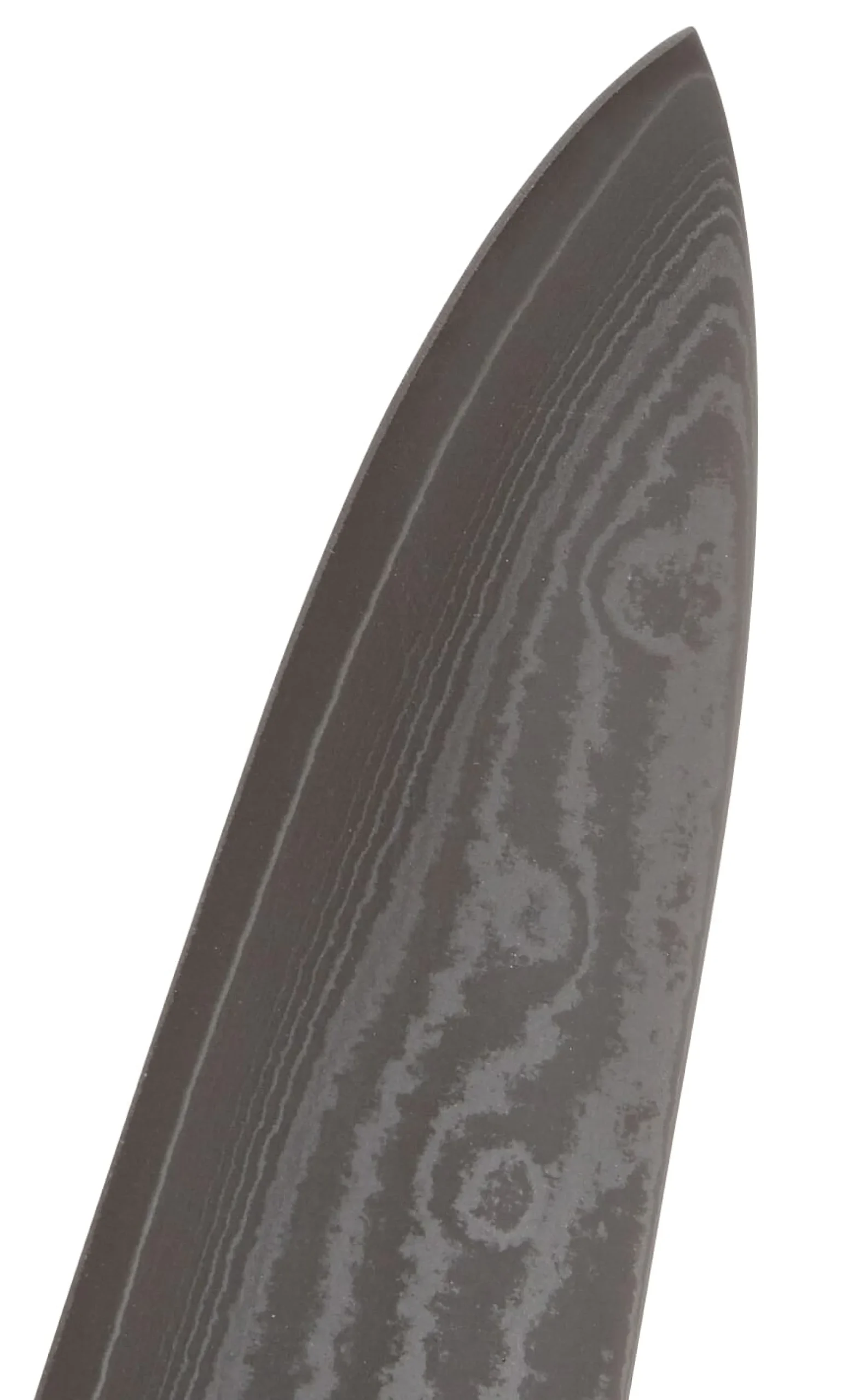 Serie von hochwertigen Messern mit Klingen aus sogenanntem Damaszener Stahl. Dieser Begriff beschreibt die angewendete Schmiedetechnik, bei der insgesamt 67 Lagen hochwertiger Messerstähle aufeinandergeschmiedet werden. Dadurch entsteht nicht nur die charakteristische Ästhetik auf dem Messerblatt, sondern auch eine enorme Schärfe und Schnitthaltigkeit. Die Griffe der Messer unterschiedlicher Größe und Klingenformen sind aus Pakka-Wood, einem im Küchengebrauch besonders dauerhaften unverwüstlichen Holzkonglomerat, das als Schichtholzlaminat ausgeführt ist und eine besonders griffstabile Oberfläche besitzt. Wir empfehlen bei allen hochwertigen Messern die Aufbewahrung in einem gut belüfteten Messerblock. Auch wenn die Klingen als rostfrei ausgewiesen sind, gehören hochwertige Messer nicht in die Spülmaschine. Nach Benutzung sollten sie feucht abgewischt werden und nach dem Trocknen sicher gelagert werden. Eine Schleifanweisung liegt jedem Messer bei.