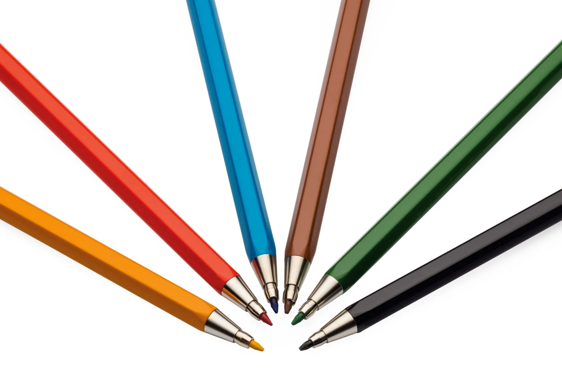 - 6 farblich sortierte, stählerne Druckbleistifte