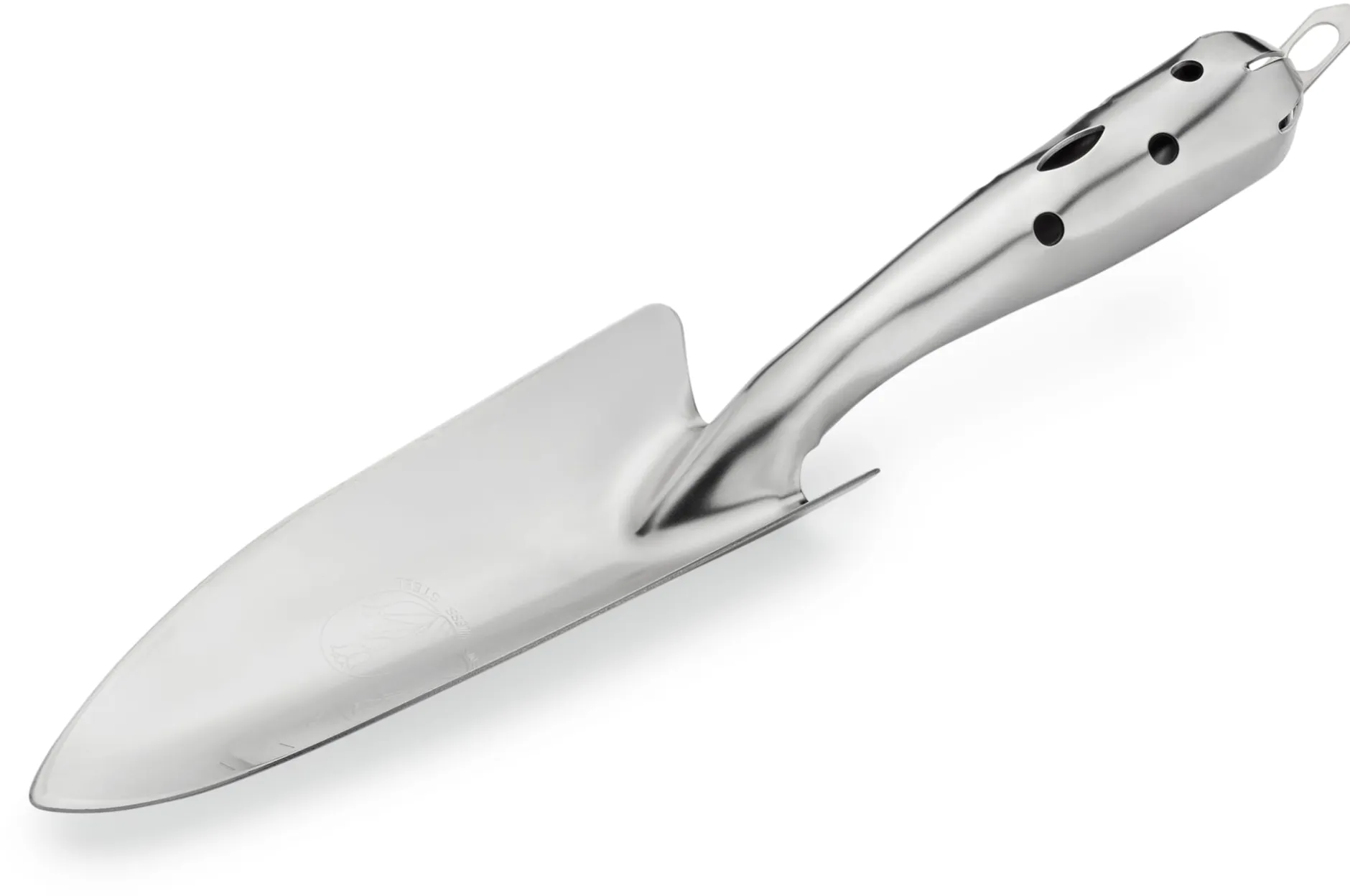 Die Blumenkelle, die Sie getrost über Nacht draußen vergessen können. Sie kommt aus Japan und wird dort in Form gebogen. Das Material der Wahl zu diesem Zweck ist Edelstahl, der in einem ersten Arbeitsschritt zu Bogen angemessener Dicke verpresst wird: insgesamt ein heute seltenes Verfahren, dem aber das wetterfeste Handwerkzeug seine Stabilität und Verwindungssteifigkeit verdankt. Mit anderen Worten: Diese Blumenkelle verbiegt sich selbst unter dem Druck harter Böden kaum, noch weniger kann sie dabei entzwei gehen. Denn da sie aus einem Stück gefertigt ist, entfällt auch die bei solchen Blumen- oder Pflanzkellen allzu oft übliche Schwachstelle zwischen Griff und angesetztem Blatt. So erledigt dieses handliche, leichte Werkzeug sämtliche ihm zugedachten Aufgaben spielend. Es hilft Ihnen dabei, Pflanzlöcher für Gemüsejungpflanzen und Sommerblumen auszuheben, es unterstützt Sie beim Setzen von Blumenzwiebeln und zeigt dabei dank der auf das Blatt aufgebrachten Zentimeterskala sogar die Pflanztiefe an. Selbstverständlich können Sie diese Blumenkelle ebenso gut bei der Pflege von Topf- und Kübelpflanzen oder beim Ausbringen von Dünger, Rasenkalk, Gesteinsmehl & Co. verwenden. Einen weiteren Vorteil hat die beschriebene Art der Verarbeitung übrigens: Wo keine Lackierung, da kann auch nichts abplatzen (und eventuell rostgefährdete Stellen der Vergänglichkeit preisgeben).