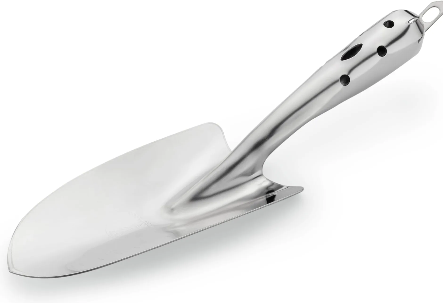 Die Blumenkelle, die Sie getrost über Nacht draußen vergessen können. Sie kommt aus Japan und wird dort in Form gebogen. Das Material der Wahl zu diesem Zweck ist Edelstahl, der in einem ersten Arbeitsschritt zu Bogen angemessener Dicke verpresst wird: insgesamt ein heute seltenes Verfahren, dem aber das wetterfeste Handwerkzeug seine Stabilität und Verwindungssteifigkeit verdankt. Mit anderen Worten: Diese Blumenkelle verbiegt sich selbst unter dem Druck harter Böden kaum, noch weniger kann sie dabei entzwei gehen. Denn da sie aus einem Stück gefertigt ist, entfällt auch die bei solchen Blumen- oder Pflanzkellen allzu oft übliche Schwachstelle zwischen Griff und angesetztem Blatt. So erledigt dieses handliche, leichte Werkzeug sämtliche ihm zugedachten Aufgaben spielend. Es hilft Ihnen dabei, Pflanzlöcher für Gemüsejungpflanzen und Sommerblumen auszuheben, es unterstützt Sie beim Setzen von Blumenzwiebeln und zeigt dabei dank der auf das Blatt aufgebrachten Zentimeterskala sogar die Pflanztiefe an. Selbstverständlich können Sie diese Blumenkelle ebenso gut bei der Pflege von Topf- und Kübelpflanzen oder beim Ausbringen von Dünger, Rasenkalk, Gesteinsmehl & Co. verwenden. Einen weiteren Vorteil hat die beschriebene Art der Verarbeitung übrigens: Wo keine Lackierung, da kann auch nichts abplatzen (und eventuell rostgefährdete Stellen der Vergänglichkeit preisgeben).