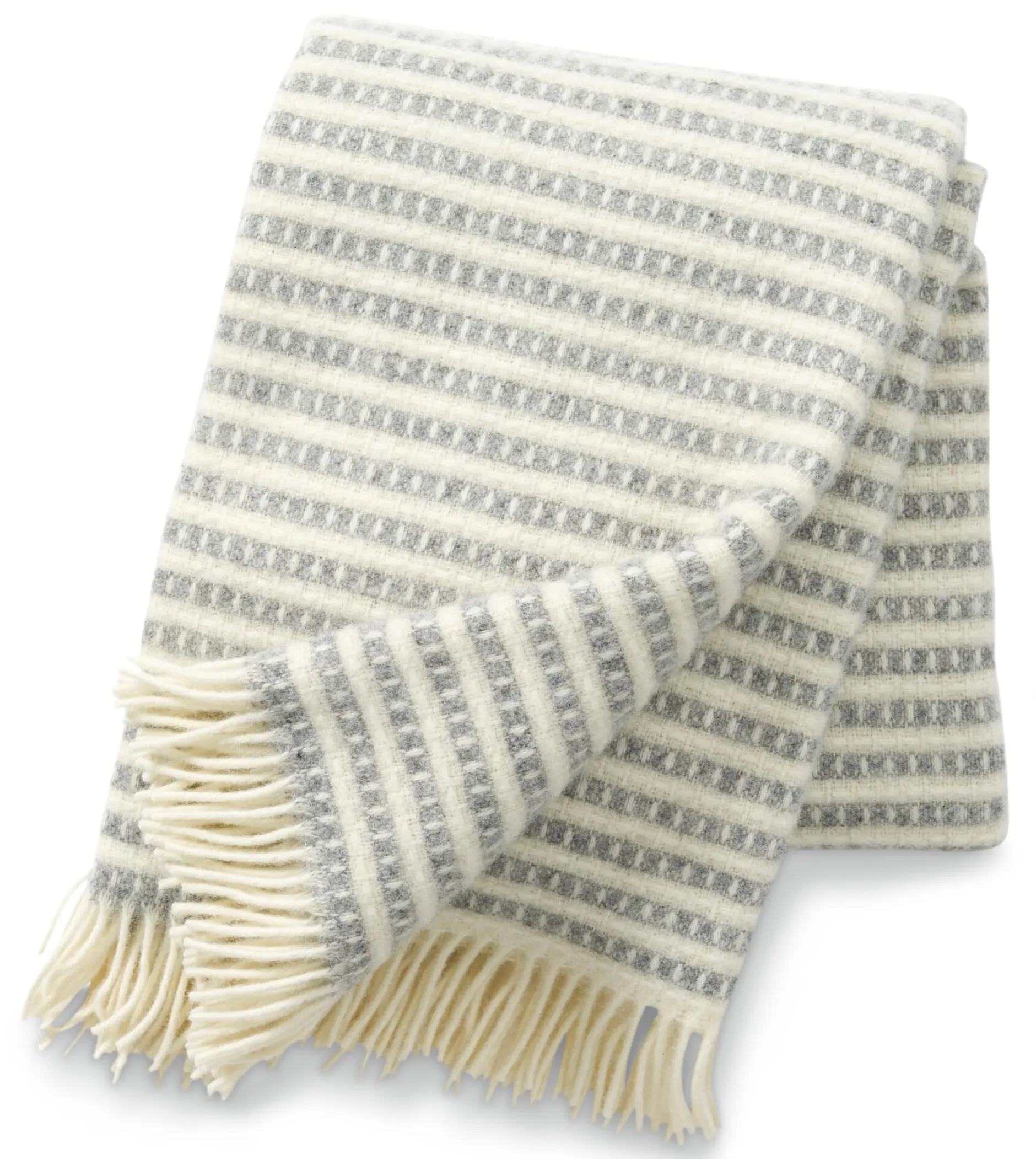Leichte Decke aus 100 % Wolle aus der ersten Schur der jungen Schafe. Die Decke trägt ein klassisches Streifenmuster in zeitgenössischen Farben.