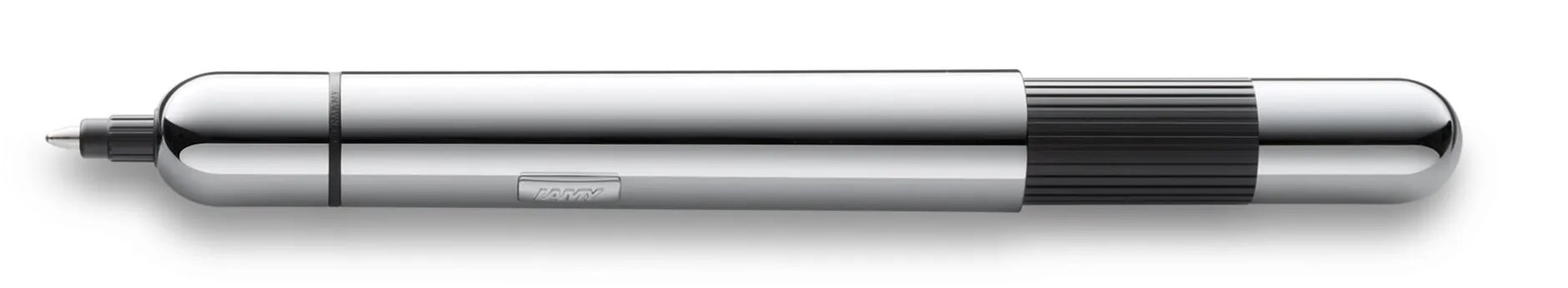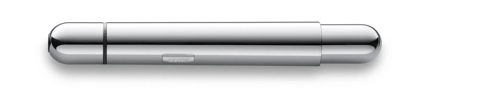 Kurzer Kugelschreiber aus lackiertem Stahl, in dem Großes steckt: Denn die doppelte Druckmechanik lässt ihn zu voller Größe wachsen, sodass er einerseits in jedes noch so kleine Etui passt, andererseits aber den Schreibkomfort eines Full-Size-Schreibers bietet. Typisch Lamy: Unheimlich formschön, farbstark und hochglänzend, seine hochwertige Wechselmine sorgt für das typisch gute Schreibgefühl.