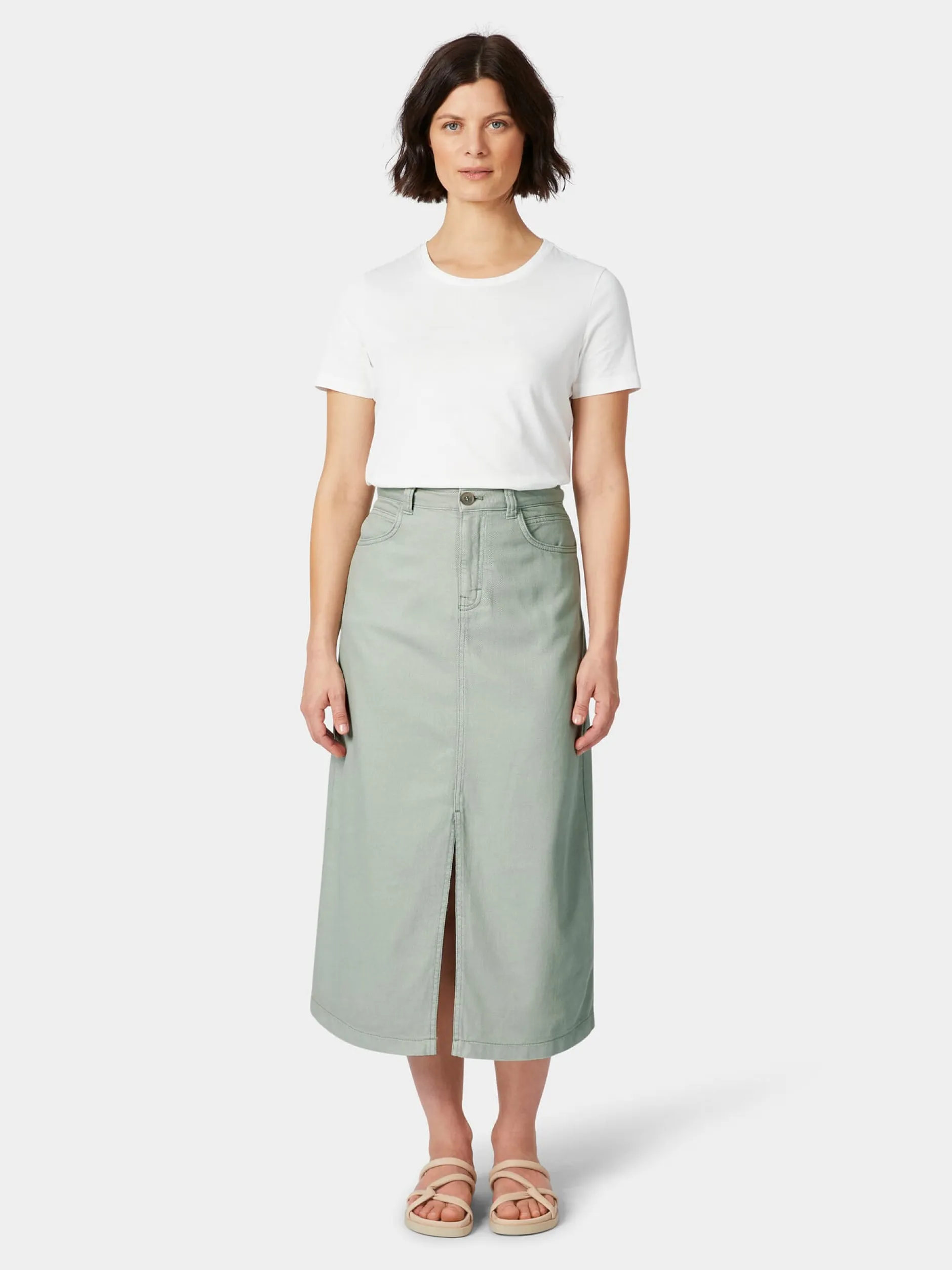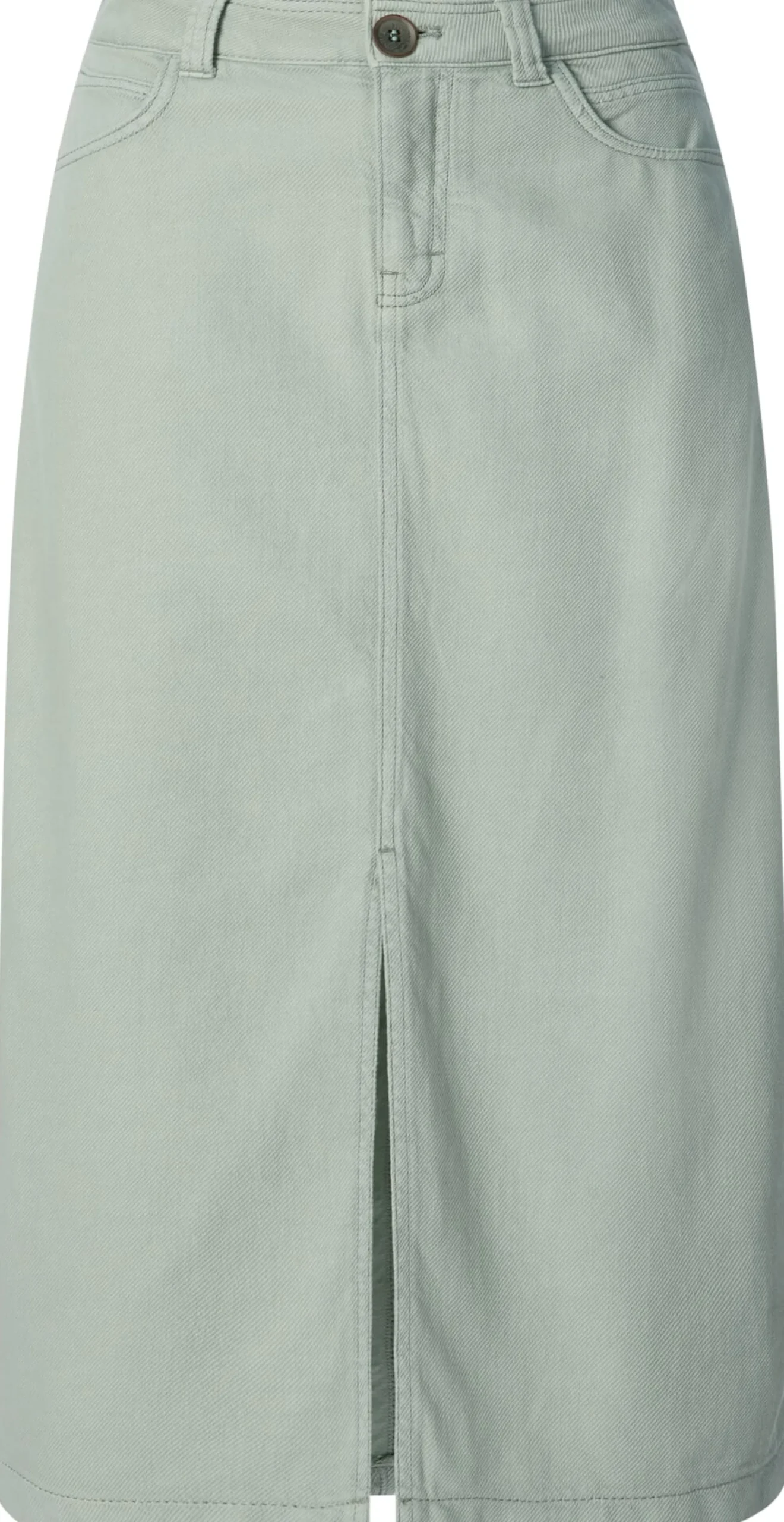 Lässig und bequem ist dieser Jeansrock und dabei so zeitlos, dass er kurzlebige Trends spielend übersteht. Er lässt sich mit Sandalen wie auch mit Sneakern oder Boots kombinieren und ist damit ein Lieblingsstück für jede Jahreszeit. Der strapazierbare Denim besteht aus hautsympathischer, kontrolliert biologisch angebauter Baumwolle und zeigt einen markanten Köpergrat. Gearbeitet ist der wadenlange Rock in leicht ausgestellter Passform und mit hohem Bund. Für mehr Bewegungsfreiheit ist er vorn mit einem langen Gehschlitz gearbeitet. Geschlossen wird er mit Reißverschluss und Steinnussknopf. Zwei Seitentaschen und zwei aufgesetzte Gesäßtaschen bieten Platz für Kleinteile des täglichen Bedarfs.