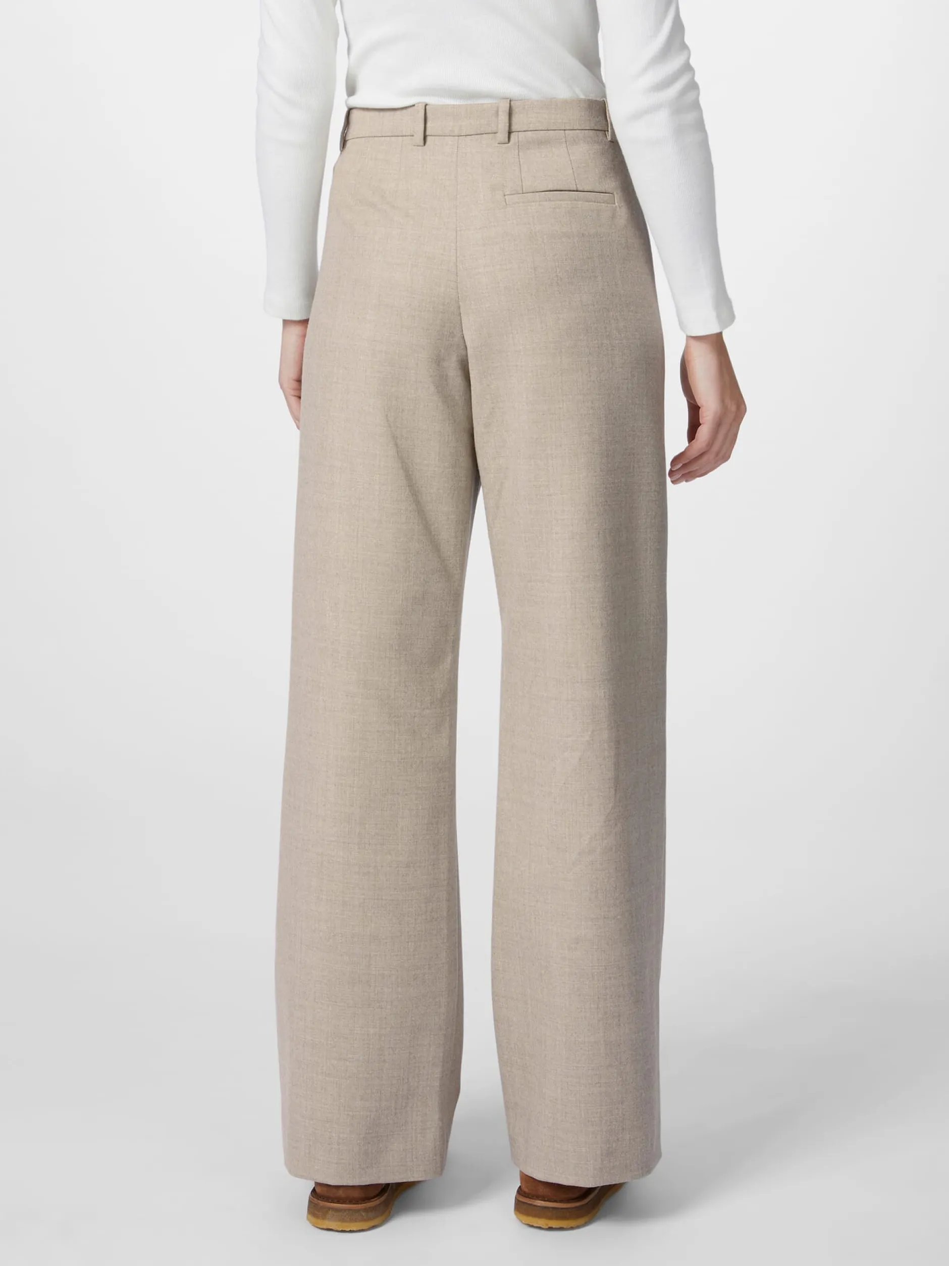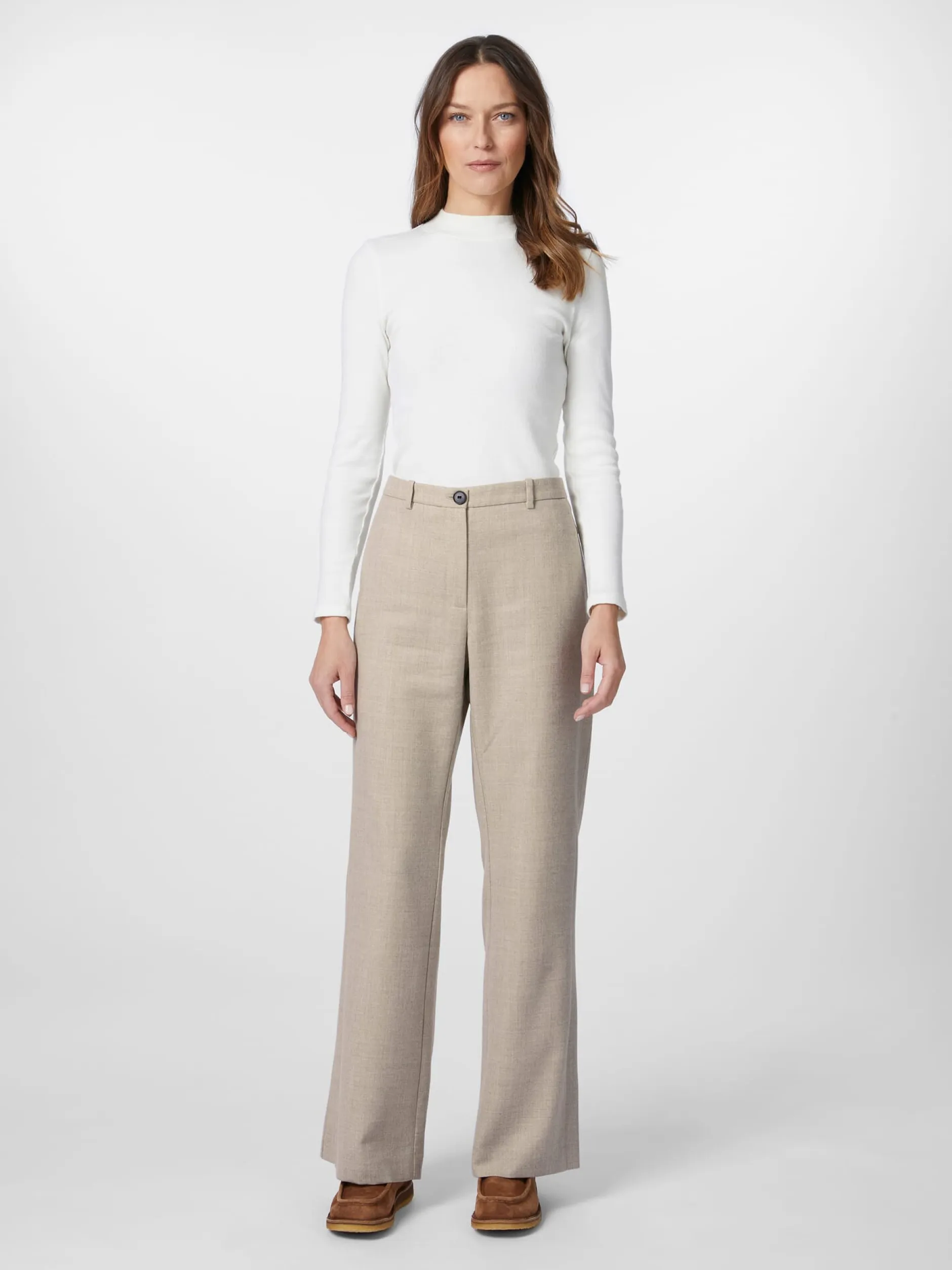 Die Marlenehose überzeugt mit ihrem legeren, komfortablen Schnitt, schmeichelt der Figur und verleiht jedem Outfit eine lässige Eleganz. Hier kommt sie klassisch mit hohem Bund und geradem, weitem Bein, aber ohne Bügelfalte. Zusätzliche Längsteilungsnähte an der Seite verleihen ihr einen markanten Look und einen guten Sitz. Das feine, weich fallende Wolltuch in Melangeoptik stammt aus der renommierten italienischen Textilmanufaktur Marzotto und besteht aus reiner Schurwolle aus kontrolliert biologischer Tierhaltung. Ausgestattet ist die Hose mit Gürtelschlaufen, zwei in die Teilungsnähte eingesetzten Seitentaschen und einer blinden Gesäßtasche. Geschlossen wird sie mit Reißverschluss und Knopf.