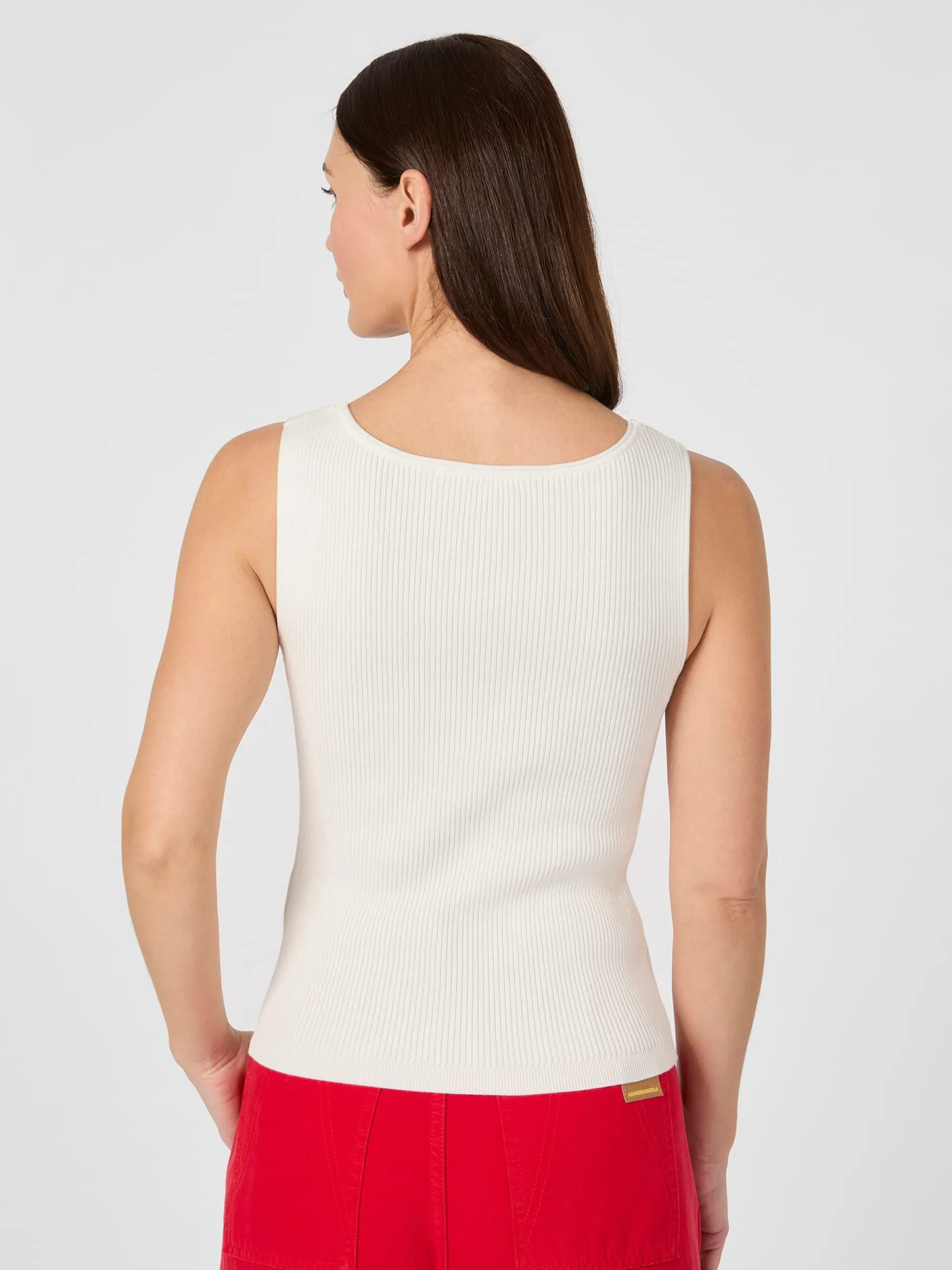 Dieses Top aus hautsympathischer, kontrolliert biologisch angebauter Baumwolle ist in Rippenstricktechnik gefertigt, daher ist es dehnbar und schmiegt sich sanft an den Körper, ohne einzuengen. Die figurnahe Passform formt eine feminine Silhouette und der tiefe V-Ausschnitt setzt das Dekolleté dezent in Szene. Ein feines Rippenstrickbündchen am Rumpf sorgt für einen guten Sitz. Das Stricktop lässt sich vielseitig kombinieren, ob mit Hose oder Rock, solo oder unter einem Blazer getragen.