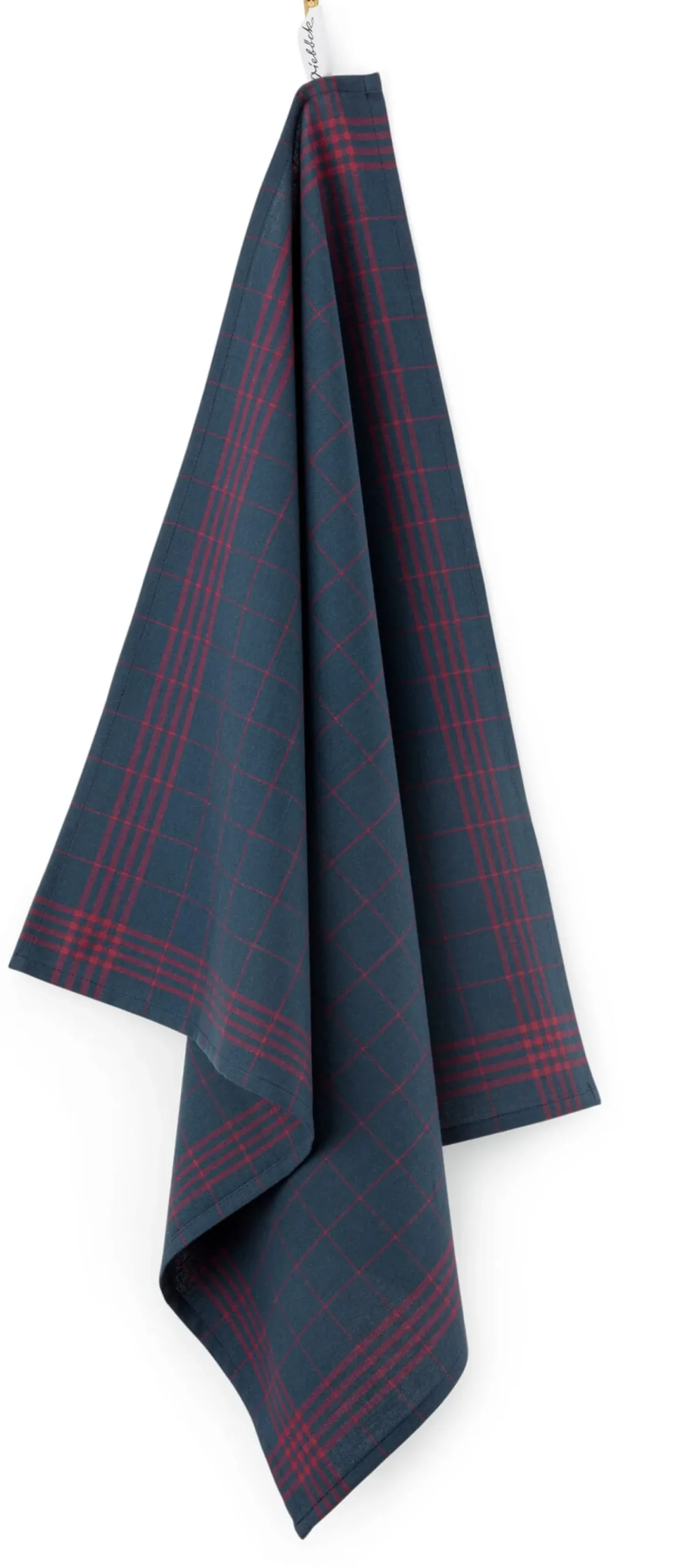 Dieses Geschirrtuch ist ganz klassisch aus saugfähiger Baumwolle gefertigt. In solider Vollzwirnqualität (Nm 34/2) und in dichter Leinwandbindung gewebt, erweist es sich als ausdauerndes Arbeitstier in der Küche, für das Abtrocknen von Geschirr und Töpfen bis hin zum Zudecken von Teig. Und so robust das Gewebe, so unempfindlich ist das Geschirrtuch dank der Farbgebung: Auf dem dunkelblauen Fond scheinen Flecken nahezu spurlos zu verschwinden – all jene, die viel mit Tomatensauce oder Roter Bete in der Küche zu tun haben, werden dies zu schätzen wissen.