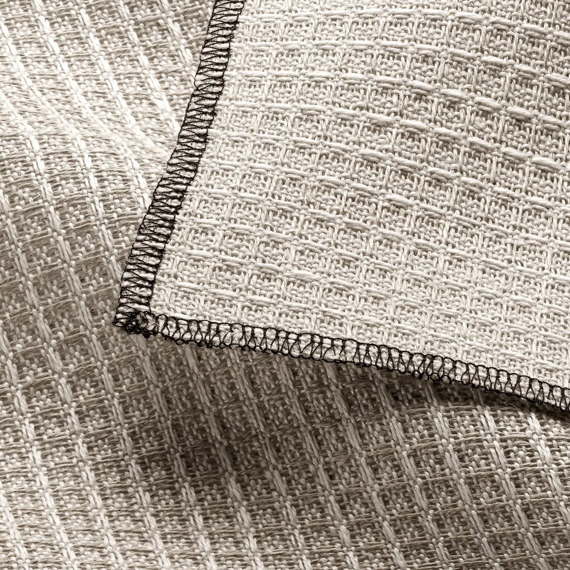 100% Leinen (Flächengewicht 341 g/qm). Maschinenwäsche bis 60 °C, nicht für den Trockner geeignet. Hergestellt in Österreich. Farbe Beige-Natur, schwarz gesäumt.