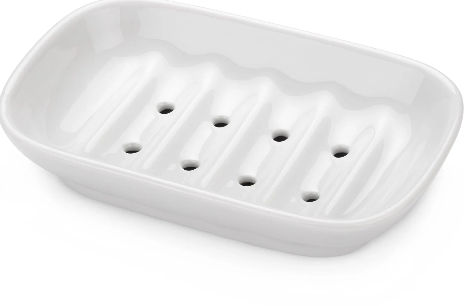Aus der Porzellanmanufaktur Lindner kommt diese klassisch-schlichte Seifenschale aus glasiertem Hartporzellan. Mit ihrer Größe von 12 × 8 Zentimetern fasst sie auch größere Seifen zum Duschen und Baden. Das Seifenstück liegt auf fünf Rippen, sodass sie nach Gebrauch gut trocknet und das Wasser abtropfen und über die acht Löcher in den Rillen abfließen kann. Da sie keinen Auffangbehälter für das Wasser hat, ist die Seifenschale vor allem für den Einsatz im Bad auf dem Waschbecken und für wasserfeste Waschtische gedacht. Lindner führt diese Seifenschale seit Jahrzehnten im Programm und fertigt sie nach wie am Firmenstandort im fränkischen Küps.