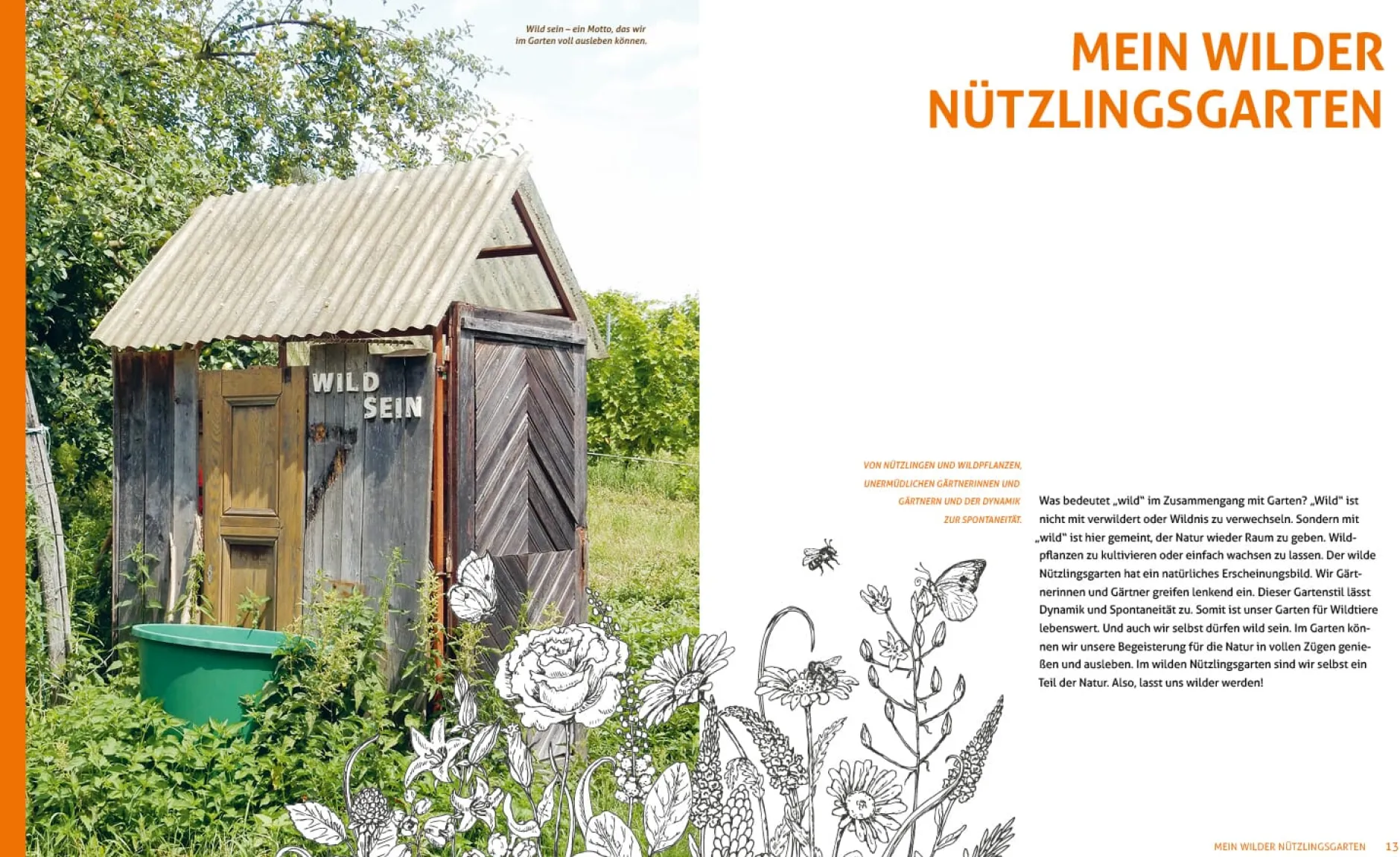 Viele INSEKTEN und WILDTIERE gehören mittlerweile zu den BEDROHTEN ARTEN. Die Ursachen sind vielfältig, die Folgen unabsehbar. Durch intensive Landwirtschaft und den Einsatz von Pestiziden, aber auch durch die Ausbreitung moderner Betonwüsten, verschwinden ihre NATÜRLICHEN LEBENSRÄUME und mit den Hecken und Blumenwiesen verlieren sie ihre NAHRUNGSQUELLEN. Höchste Zeit also, in unseren eigenen Gärten stärker auf das Wohl unserer TIERISCHEN BESUCHER zu achten und letztlich auch uns selbst ETWAS GUTES ZU TUN: genau hinschauen und -hören, der NATUR ZEIT und RAUM geben und das WILDSEIN wieder lernen.