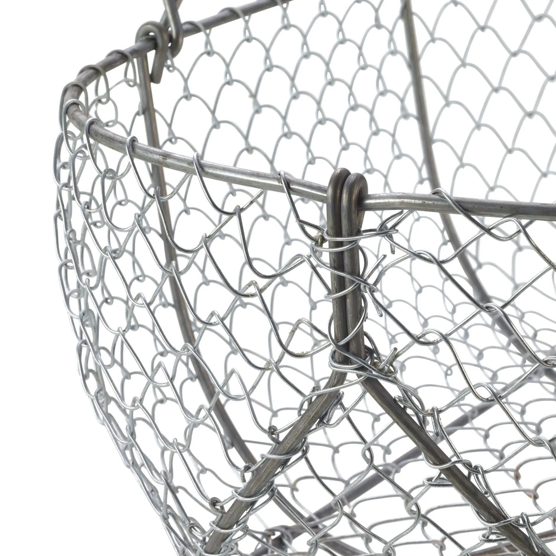 Feuerverzinktes Drahtgeflecht in einem Rahmen aus galvanisch verzinktem Draht. Henkel ebenfalls aus galvanisch verzinktem Draht, mit Buchenholzgriff. Hergestellt in Frankreich.