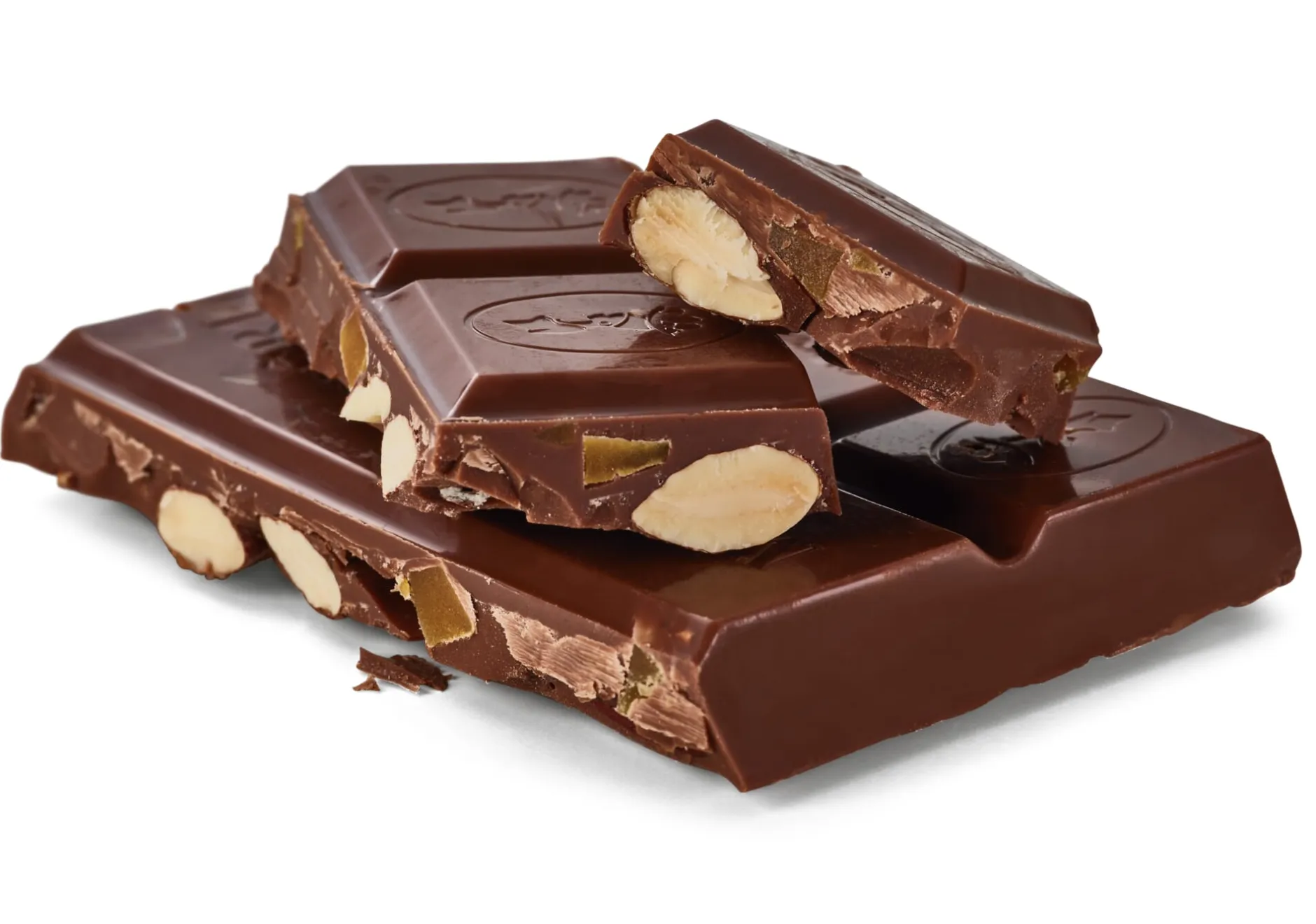 Vollmilchschokolade mit Kumquats und ganzen Mandeln