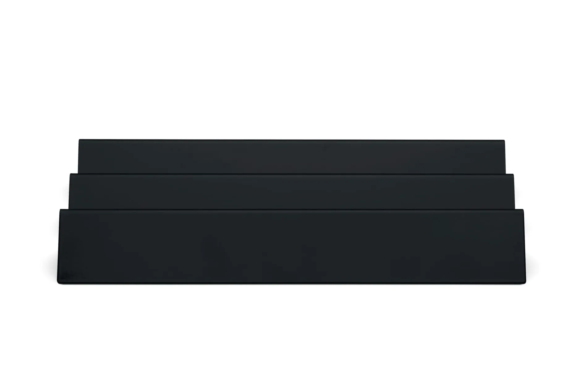 Stahlblech fünffach geknickt, separat nutzbar zur Ablage von Visitenkarten, Schreibgerät, sonstigen Zubehören und vielem mehr auf Tisch oder Regal sowie als Einsatz in der Ablage FALTER – dort passen maximal zwei KNICKER hintereinander.