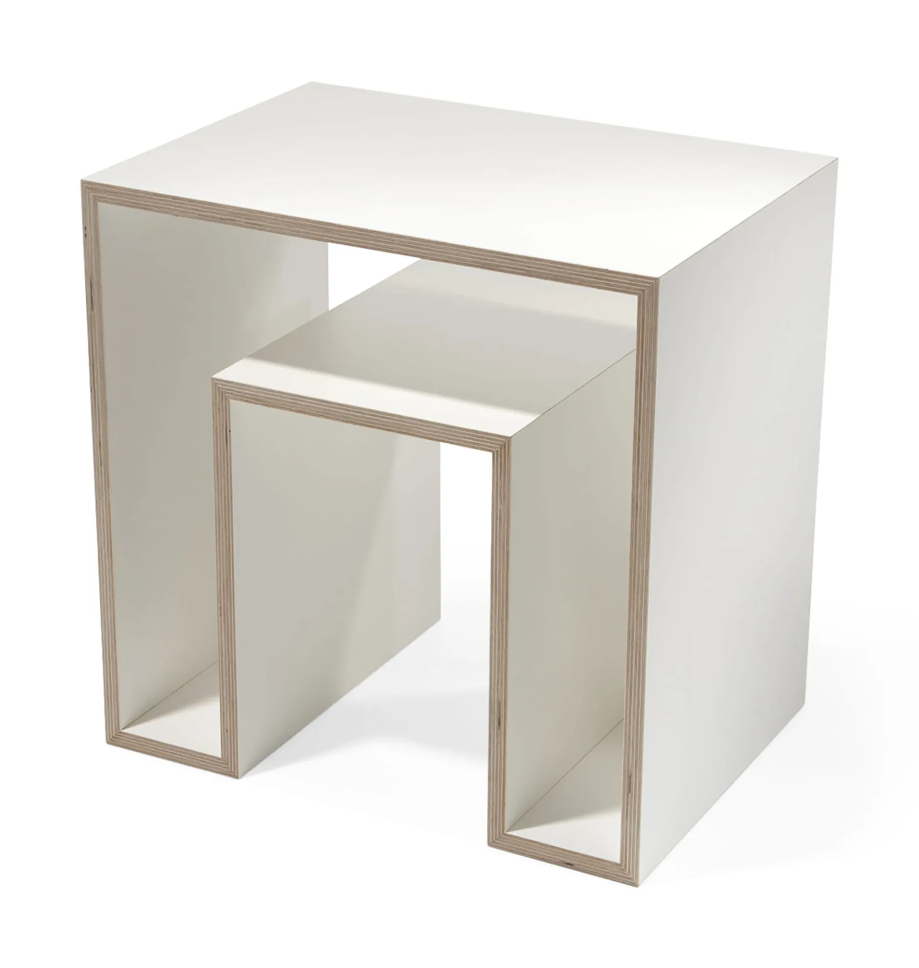Hochwertig verarbeitetes kleines Möbelstück: ECHO dient als Tisch in Flur, Wohn- und Schlafraum. Die unterschiedlich großen Ablageflächen dieses Beistelltischs bieten Platz für alle möglichen Dinge. Die Qualität der handwerklichen Verarbeitung ist an den acht sauber gesetzten Gehrungswinkeln ablesbar.