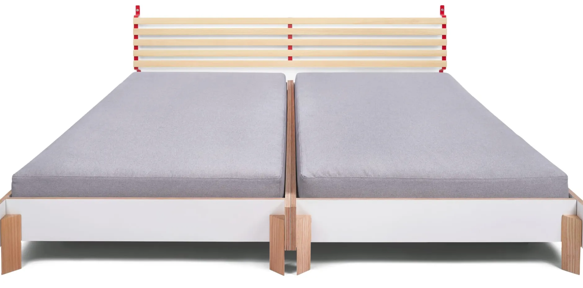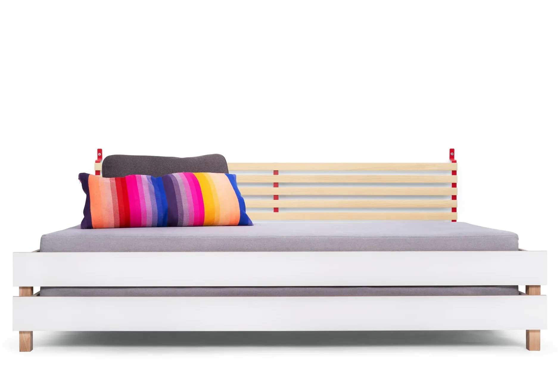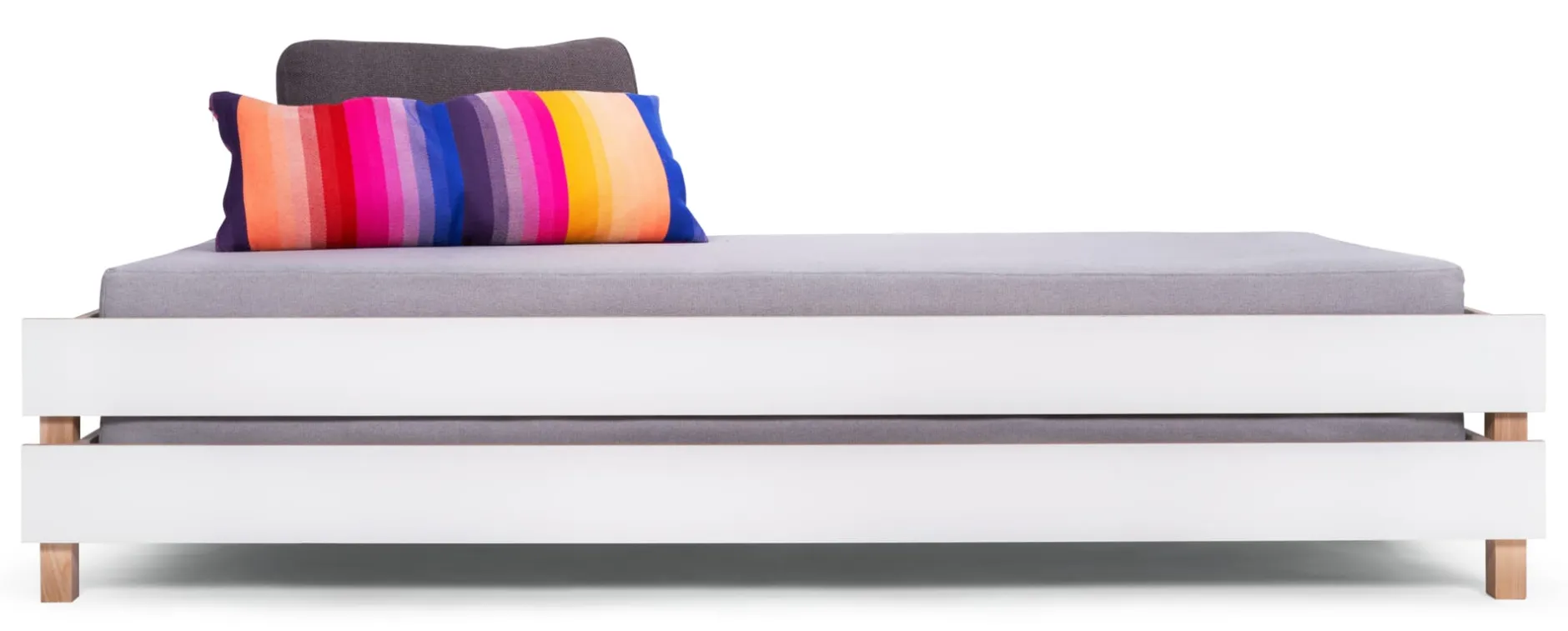 - Gestapelt als Kastenbett und Sofa, nebeneinander für breite Schlafgelegenheit