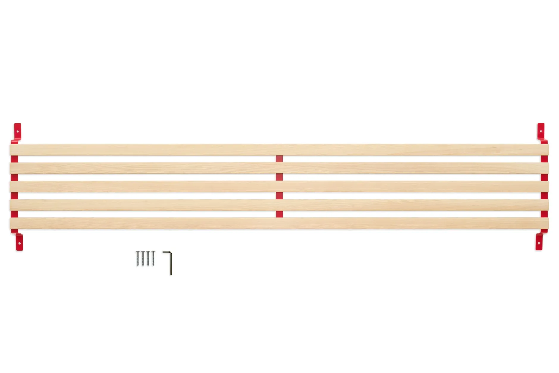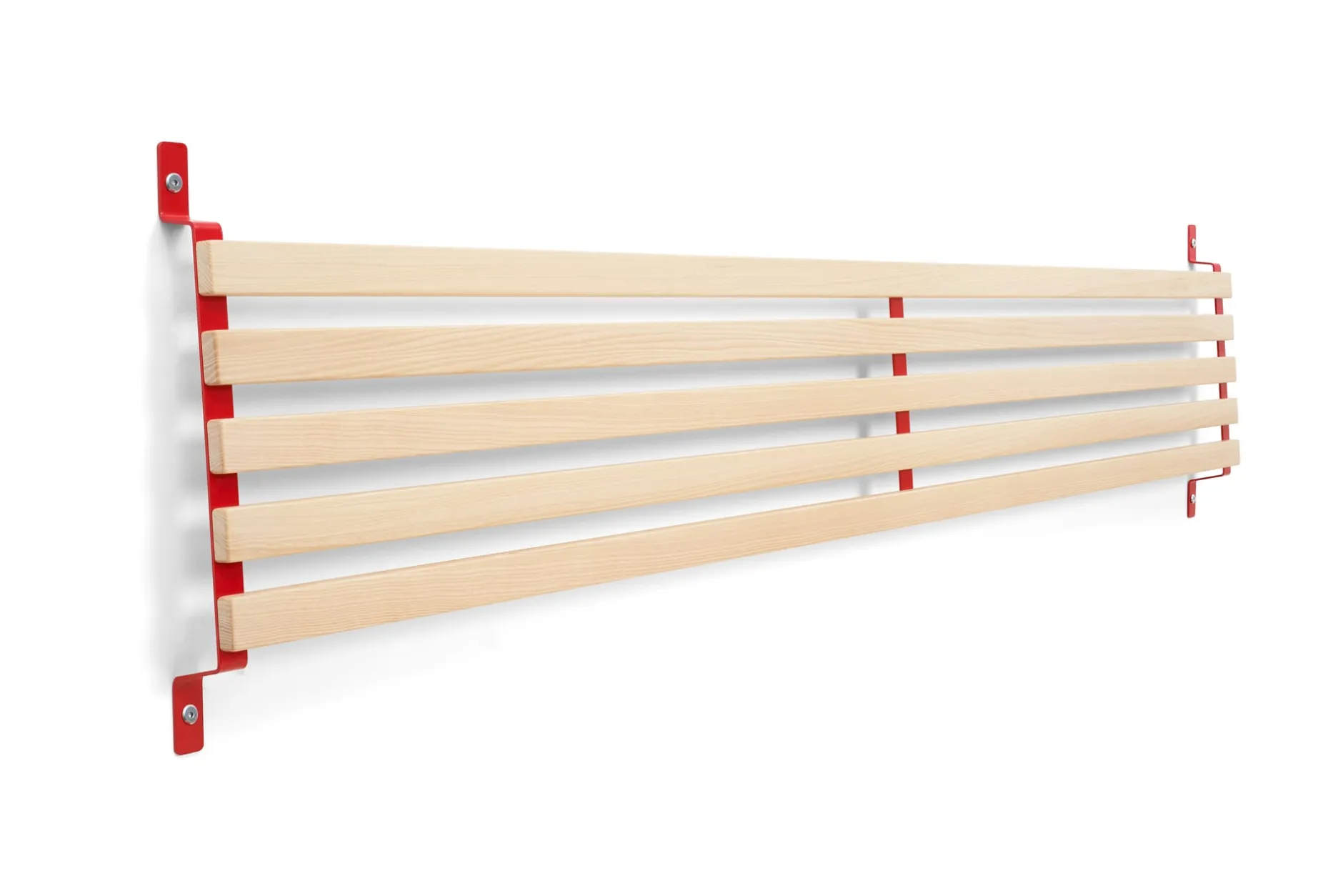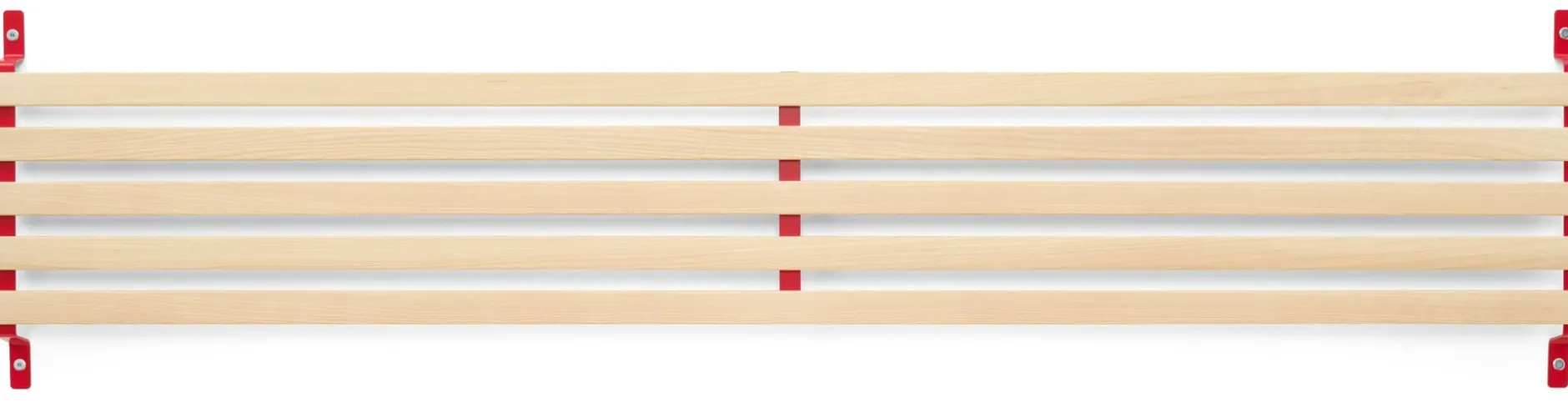 SCHMIEGER ist ein universell einsetzbares Kopfteil und Rückenlehne. Die naturbelassenen und samtweich geschliffenen Leisten aus Eschenholz sind flexibel und geben bei Belastung leicht federnd nach. Sie reagieren beim Anlehnen auf Körperdruck und bieten angenehmen Komfort. Kissen bieten sie Halt, Decken lassen sich darüber hängen. In seiner schlichten Formgebung und mit seinem Materialeinsatz passt sich SCHMIEGER diskret an und ergänzt Betten und Liegen verschiedenster Art. Als Kopfteil ist es für annähernd jedes Bettbreitenmaß gedacht, denn ein eventueller seitlicher Überstand ist Teil der Gestaltungsidee. Wir empfehlen SCHMIEGER für schmale Einzelbetten wie für breite Doppelbetten, speziell für die Betten GURTBETT und SIMPLON aus unserem MAGAZIN-Sortiment ist das Kopfteil geeignet. In Verbindung mit längs an der Wand stehenden Liegen – wie beispielsweise des stapelbaren Bettes STIEGE – erfüllt SCHMIEGER seine Rolle als komfortspendende Rückenlehne. Die Montage über die beiden an der Wand zu montierenden Metallbügel ist denkbar einfach, Schrauben und Dübel gehören zum Lieferumfang.