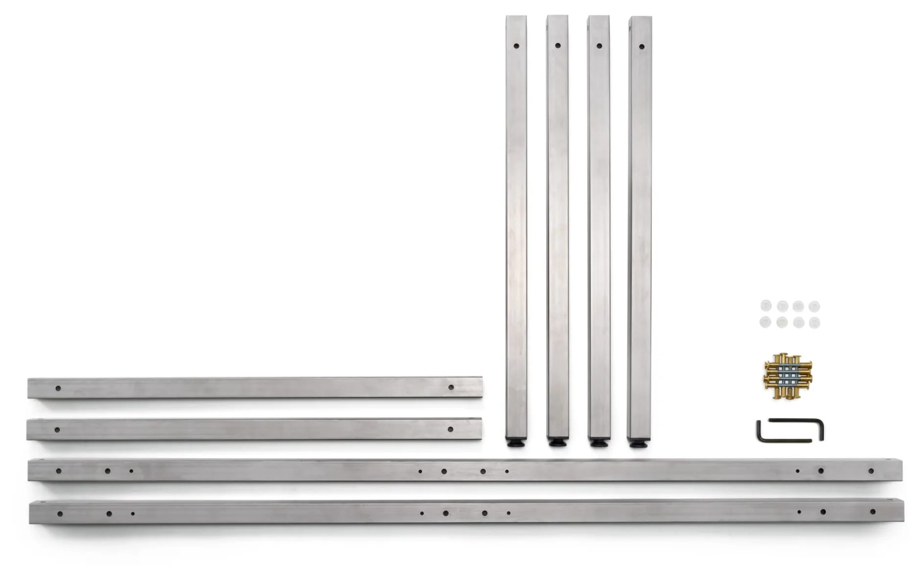 - Stabiles Tischgestell aus acht stählernen Quadratrohren