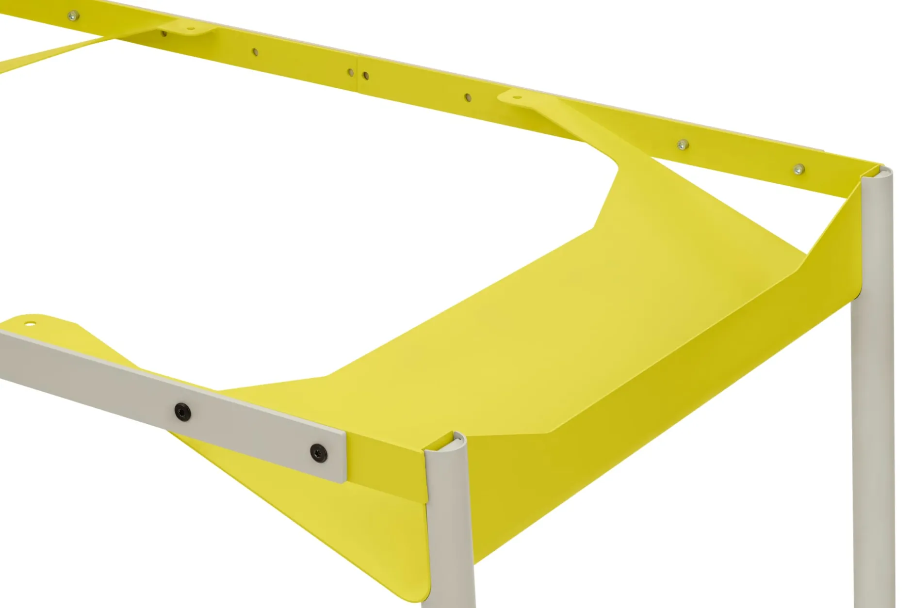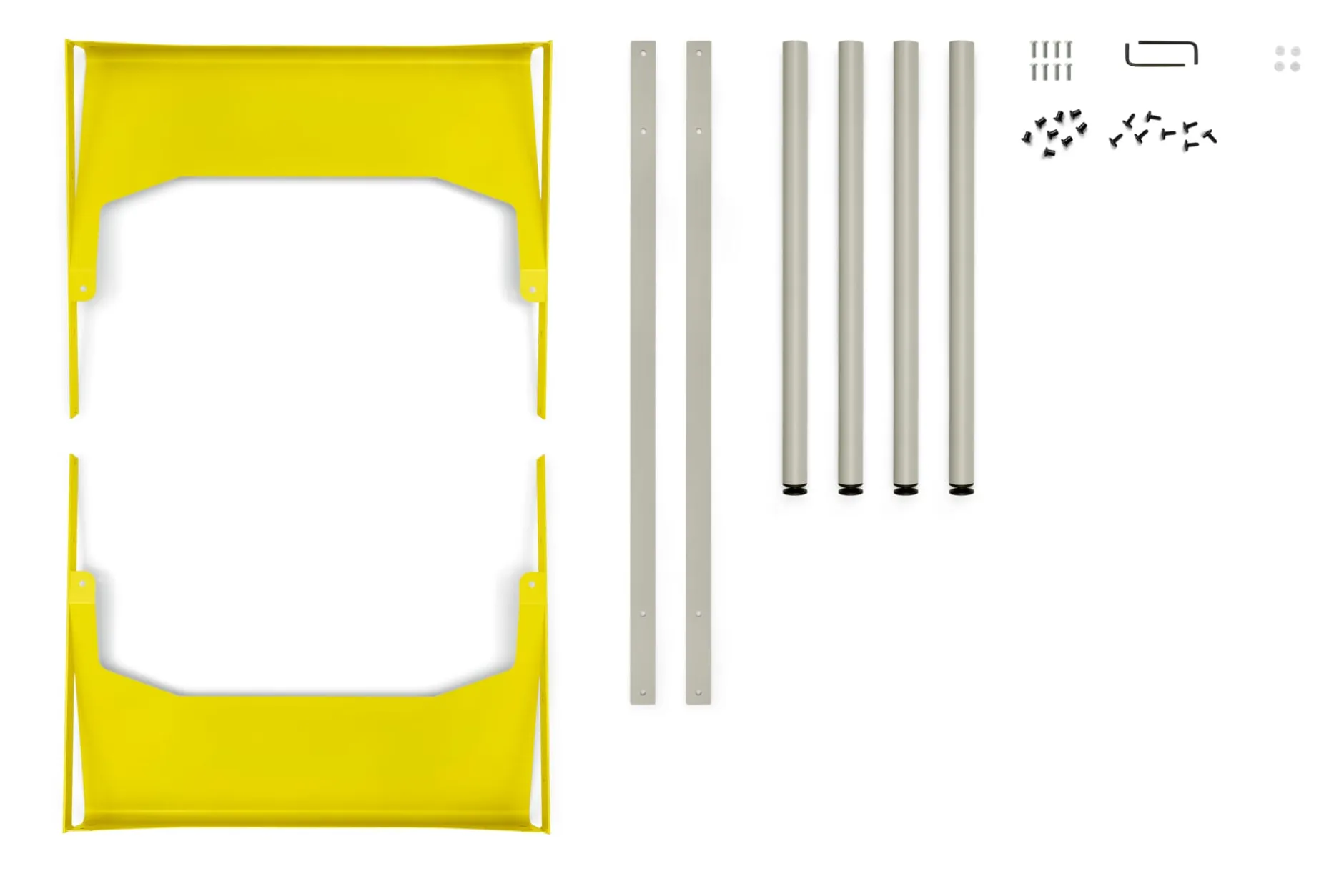 Material: Stahl, pulverbeschichtet (Kieselgrau RAL 7032 und Schwefelgelb RAL 1016); Kunststoff
