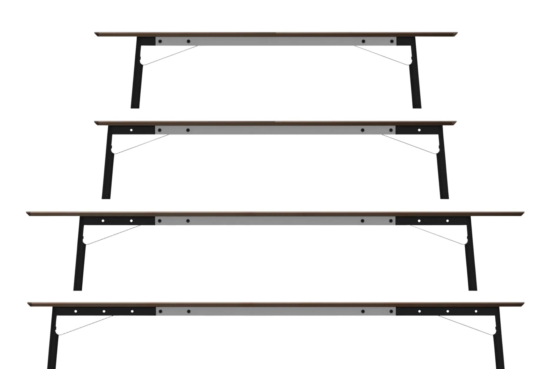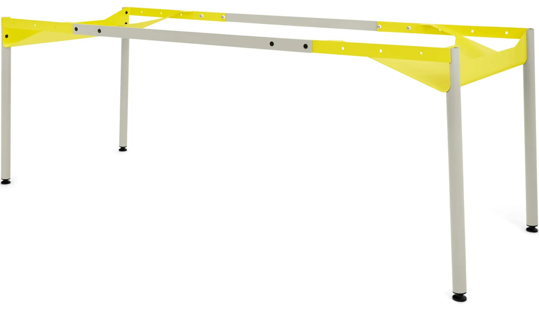 Wie aus dem Lehrbuch der Konstruktion: Diagonale heißt das Zauberwort! Beim Tischgestell ZEHDENICKER sorgt sie – elegant ausgeformt mit den an den Kopfseiten platzierten wannenartigen Bauteilen – für Stabilität und Verwindungssteifigkeit. Kein Wackeln, kein Schaukeln. Und das unabhängig davon, ob das Gestell im Architekturbüro oder am Essplatz eingesetzt wird. Aber auch sonst hat der formschöne und trotz seiner Robustheit und Stabilität fast filigran wirkende ZEHDENICKER allerhand zu bieten: Die stählernen Zargen des Tischgestells sind mit einem Lochraster versehen und erlauben es, das Gestell zwischen einer Breite von 135 bis 210 cm in festen Abständen zu variieren. Die beiden Wannen an den Köpfen des Tischs sind als Ablage für beispielsweise Servietten am Esstisch, Zeitungen oder auch die Mehrfachsteckdose am Arbeitsplatz zu nutzen. Zur Ausstattung gehören nivellierbare Stellfüße an den Tischbeinen. Alle Bauteile werden getrennt geliefert und sind mit wenigen Schrauben im Handumdrehen montiert.